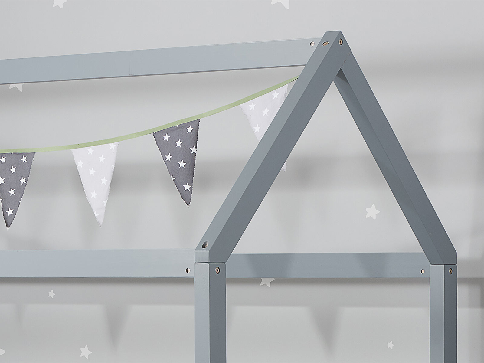 ? The wooden bed frame in the shape of a house is the perfect bed for your little one?s bedroom.