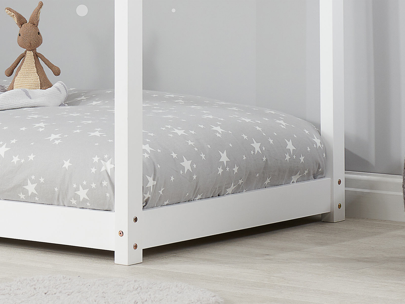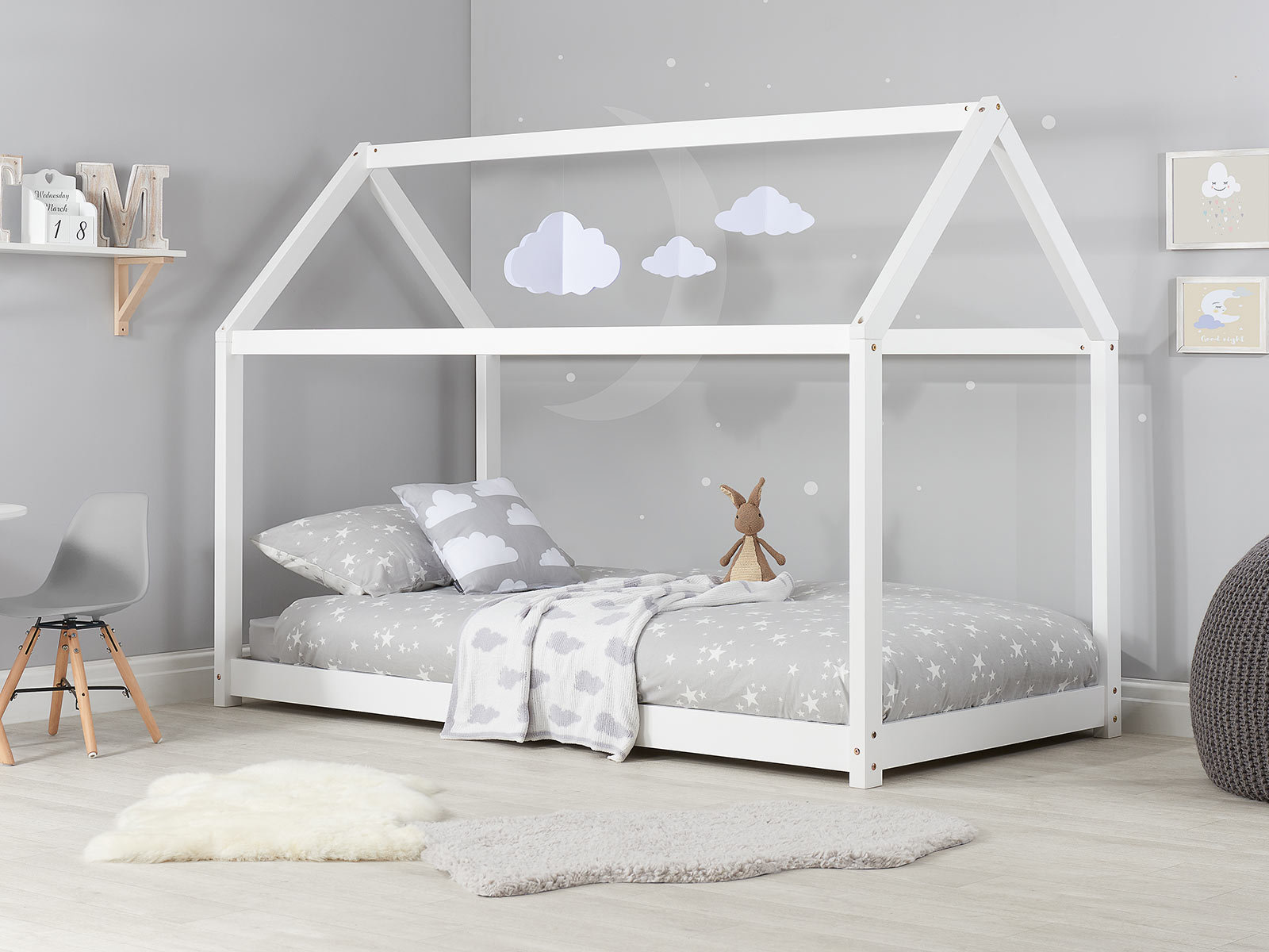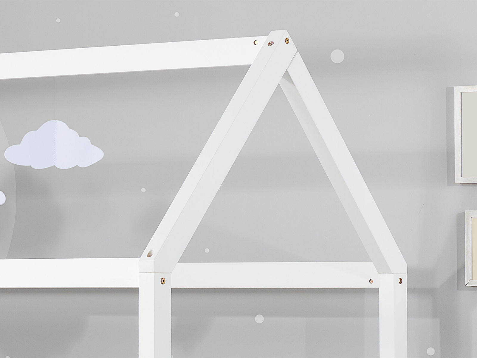 ? The wooden bed frame in the shape of a house is the perfect bed for your little one?s bedroom.