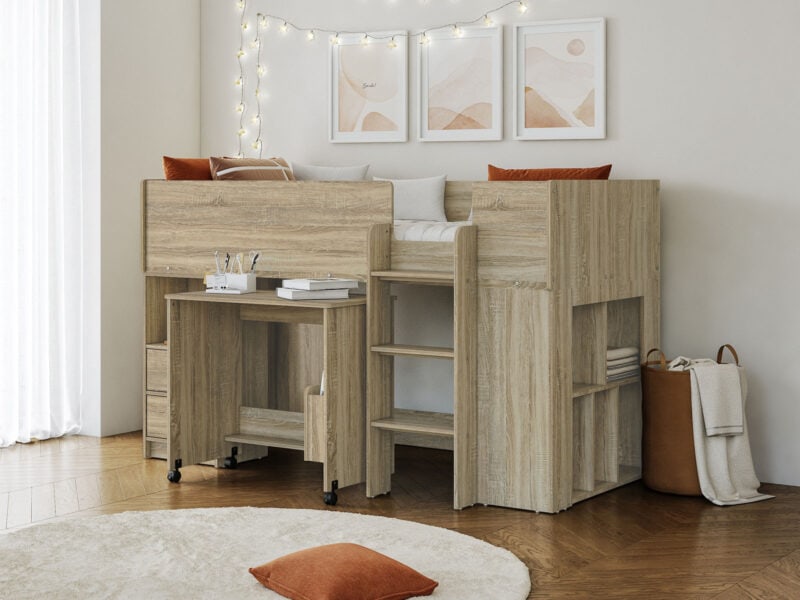 A stylish mid sleeper bed in a natural Sonoma oak finish, offering a perfect balance of storage, functionality, and modern design.