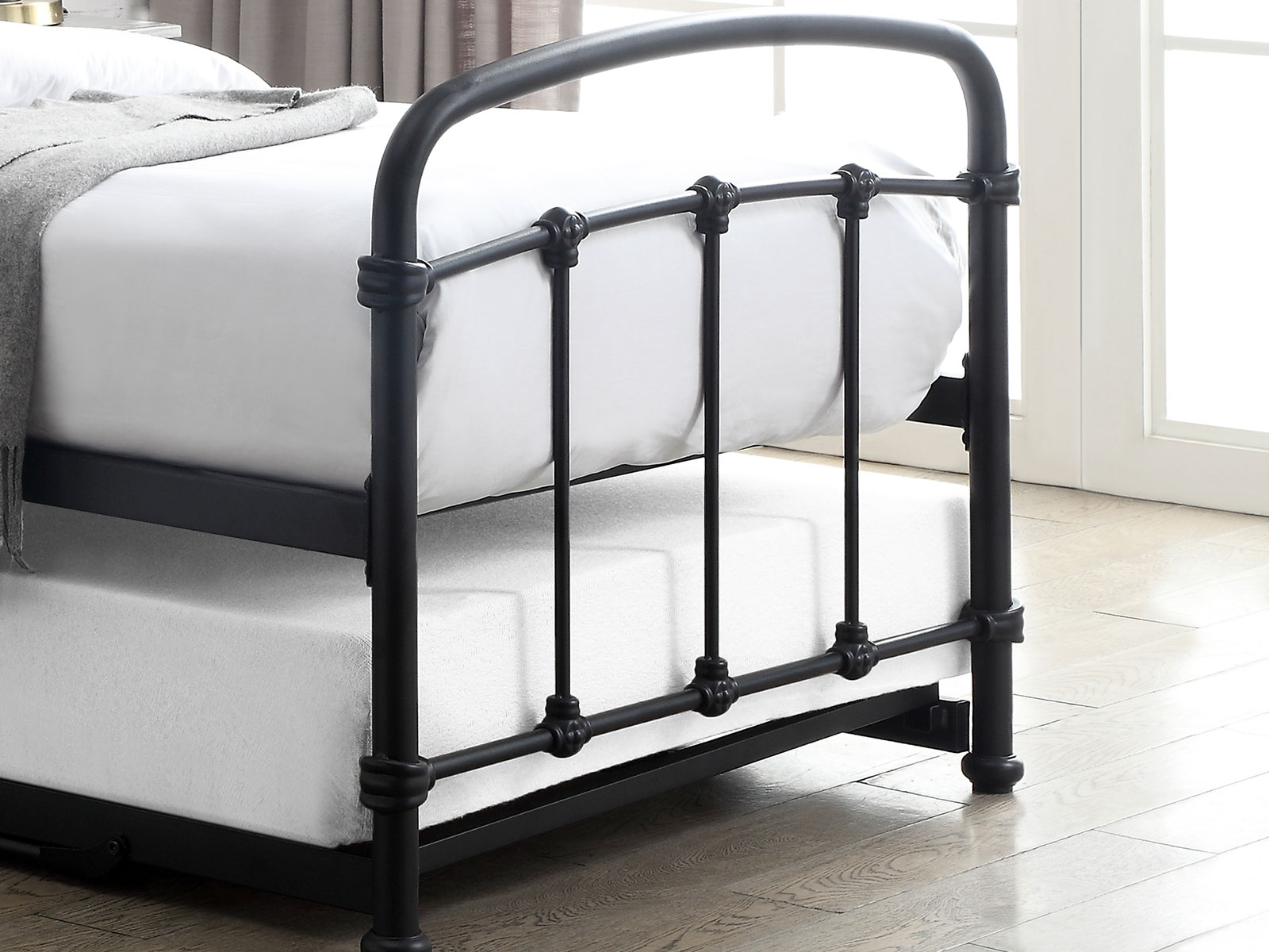 The Flintshire Furniture Mostyn Guest Bed in Sand Blast Black is avaialable in 3ft Single (90cm).