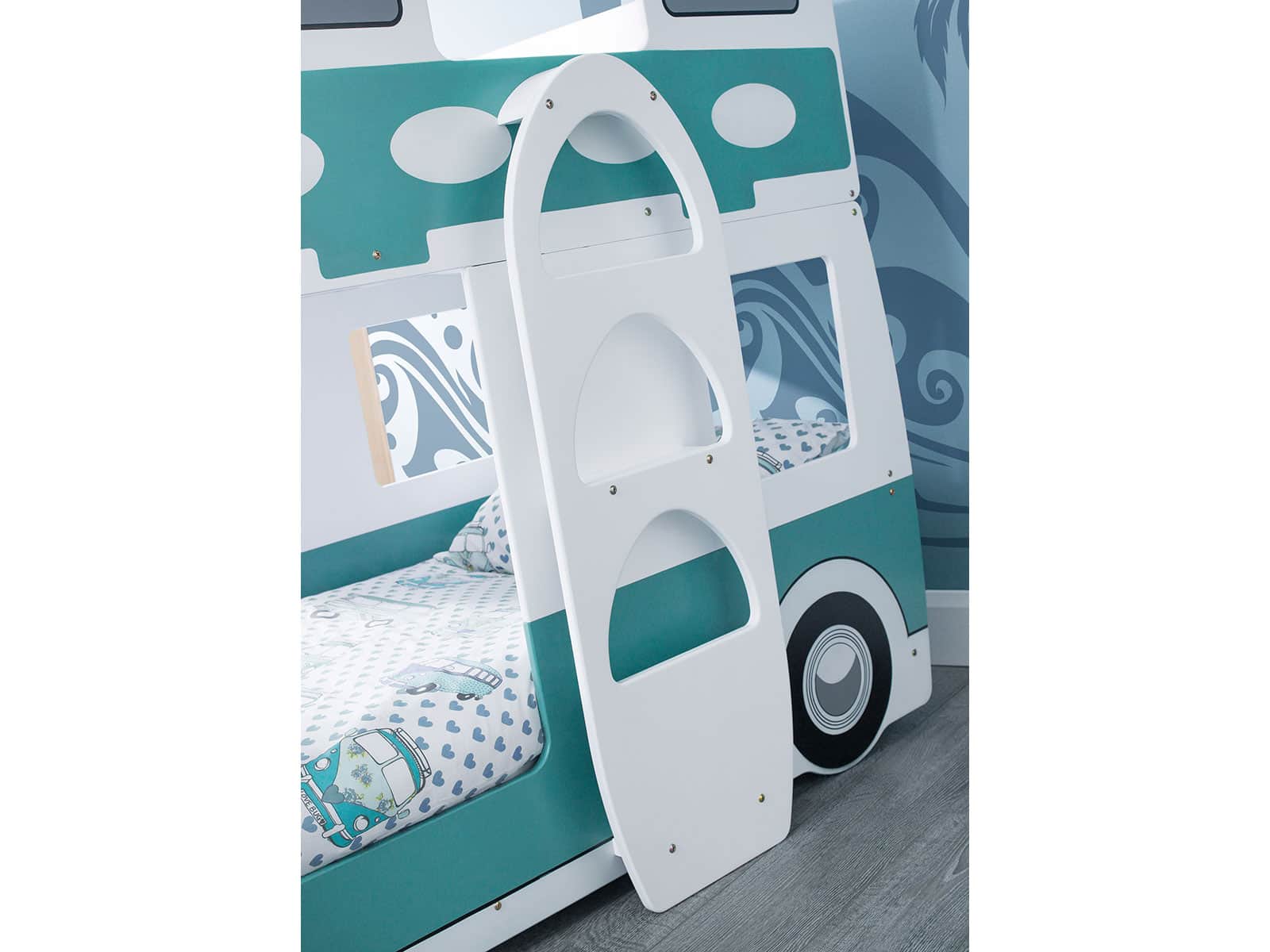 The Campervan Bunk Bed is the perfect fun design for your child’s bedroom! This beautifully crafted, sturdy bed will make your child feel secure at bedtimes, as well as providing a fun space for them to use during the day. Featuring a surfboard style ladder, steering wheel and very accurate detailing to give a realisitic look.