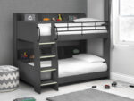 The domino bunk combines anthracite effect foil to create this stylish bunk bed. Unique to this product is the added shelving along the back of each bunk to give that much needed additional storage space. Another nice feature of the Domino is the Luminous ladder steps that glow in the dark!