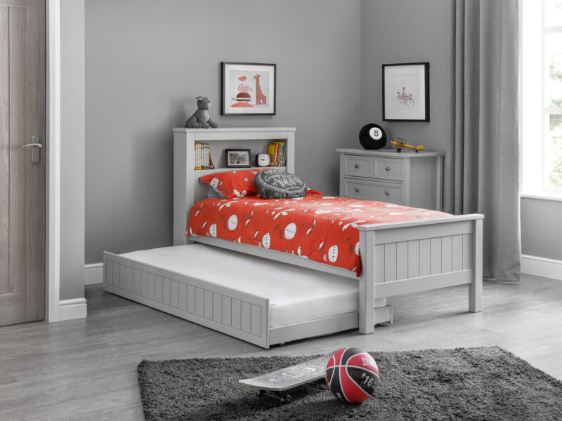 Crafted from MDF in a stunning dove grey lacquer, the Maine Underbed features characterisitic panelling, creating a refind asthetic. Forming an extra bed when needed for your guests, the Underbed can be neatly tucked away under its perfect companion, the Maine Bookcase Bed, when not in use forming the ultimate space saving solution.