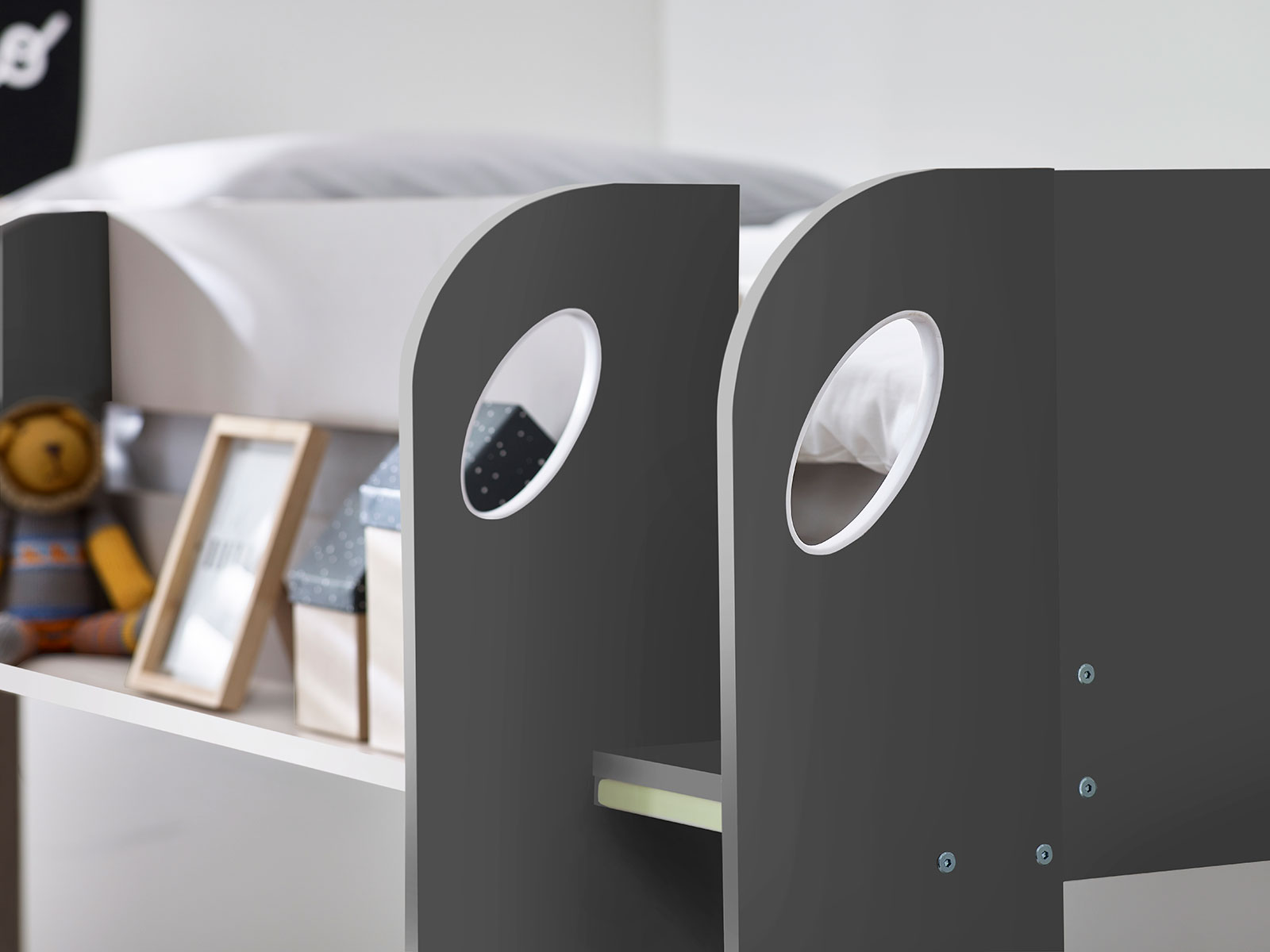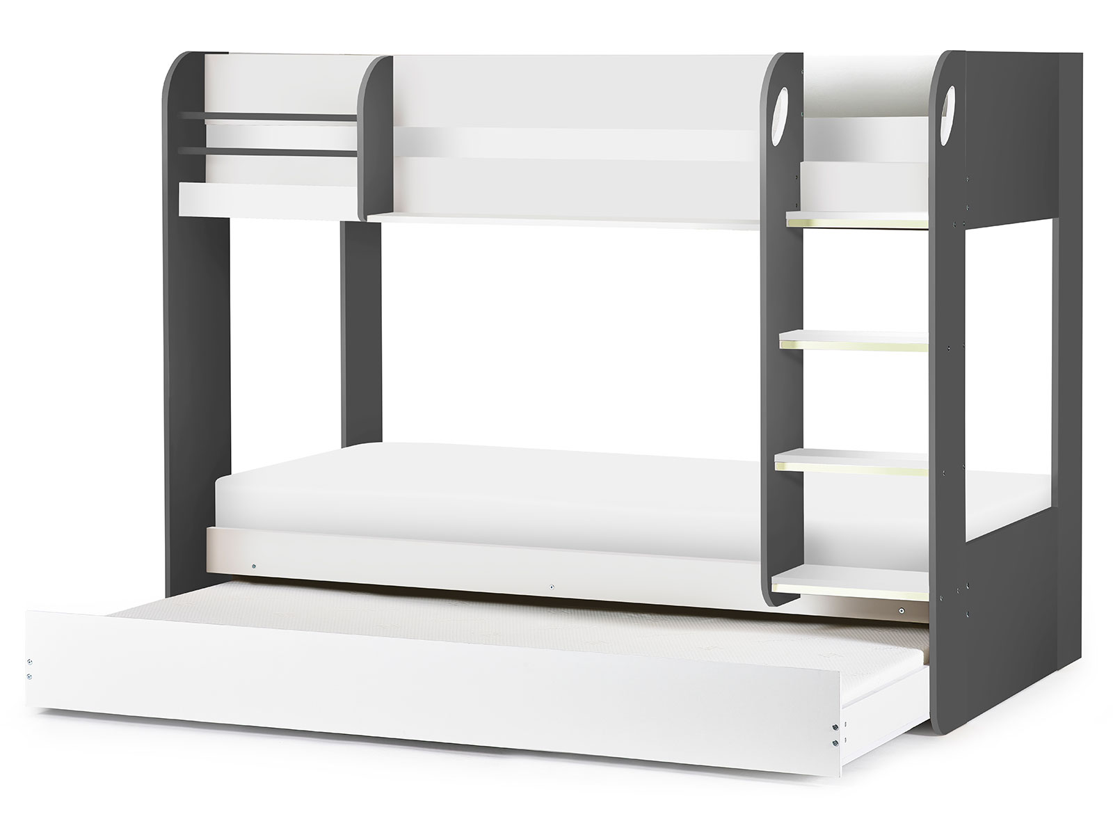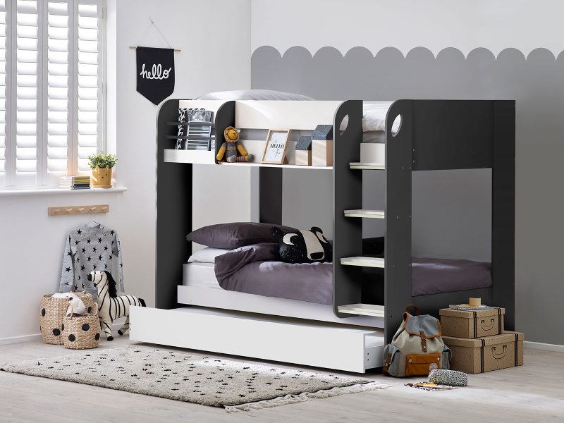 Beautifully designed with a pull-out trundle, our Mars bunk is solidly crafted to ensure the safety of your children. With shelving for books and frames, this bunk has huge practicality; combined with a timeless aesthetic, is perfect for your children?s? bedroom.