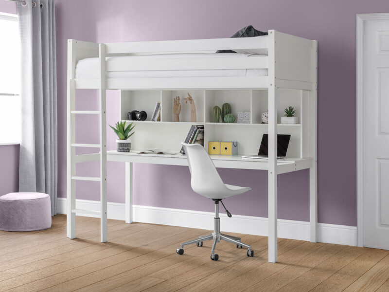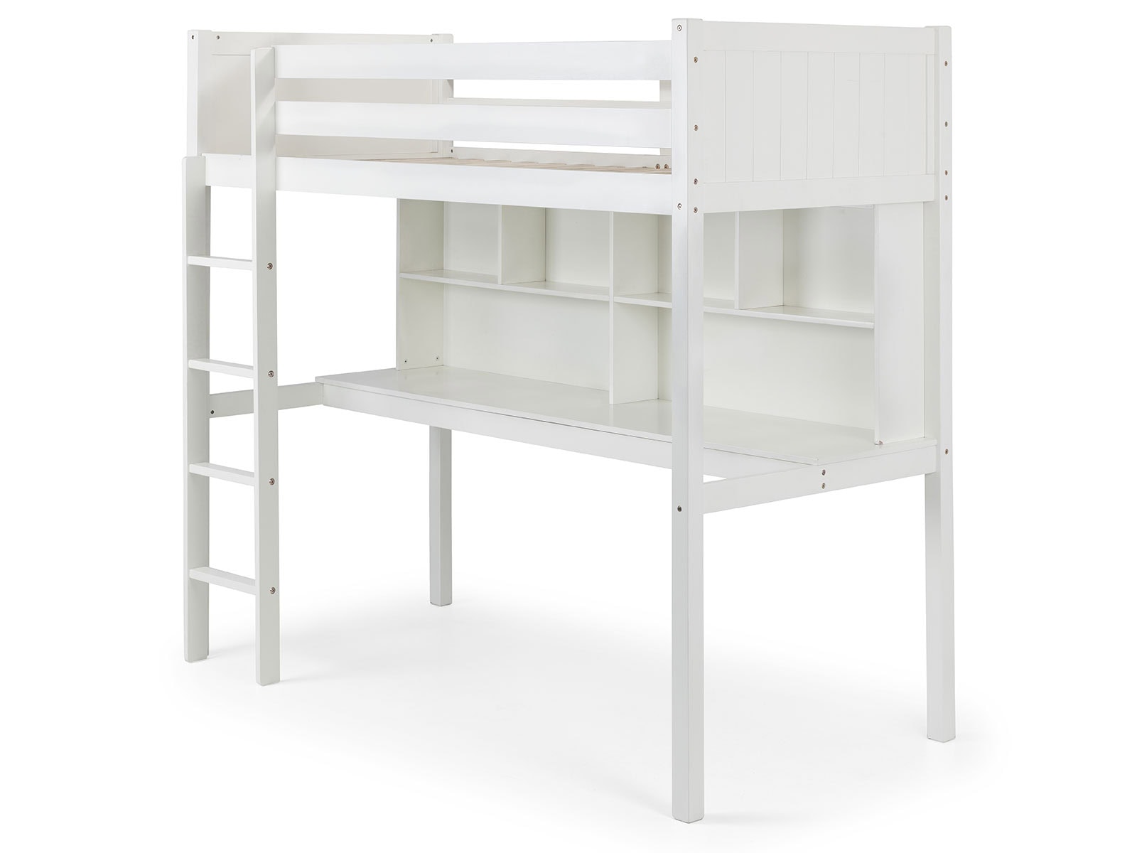 Crafted from Malaysian Hardwood and MDF, the Titan High sleeper is finished in a white lacquer, matching with any bedroom decor as they grow. Offering a classic design with panelled detailing, this high sleeper features a workstation underneath, complete with shelves and room beneath for extra storage.