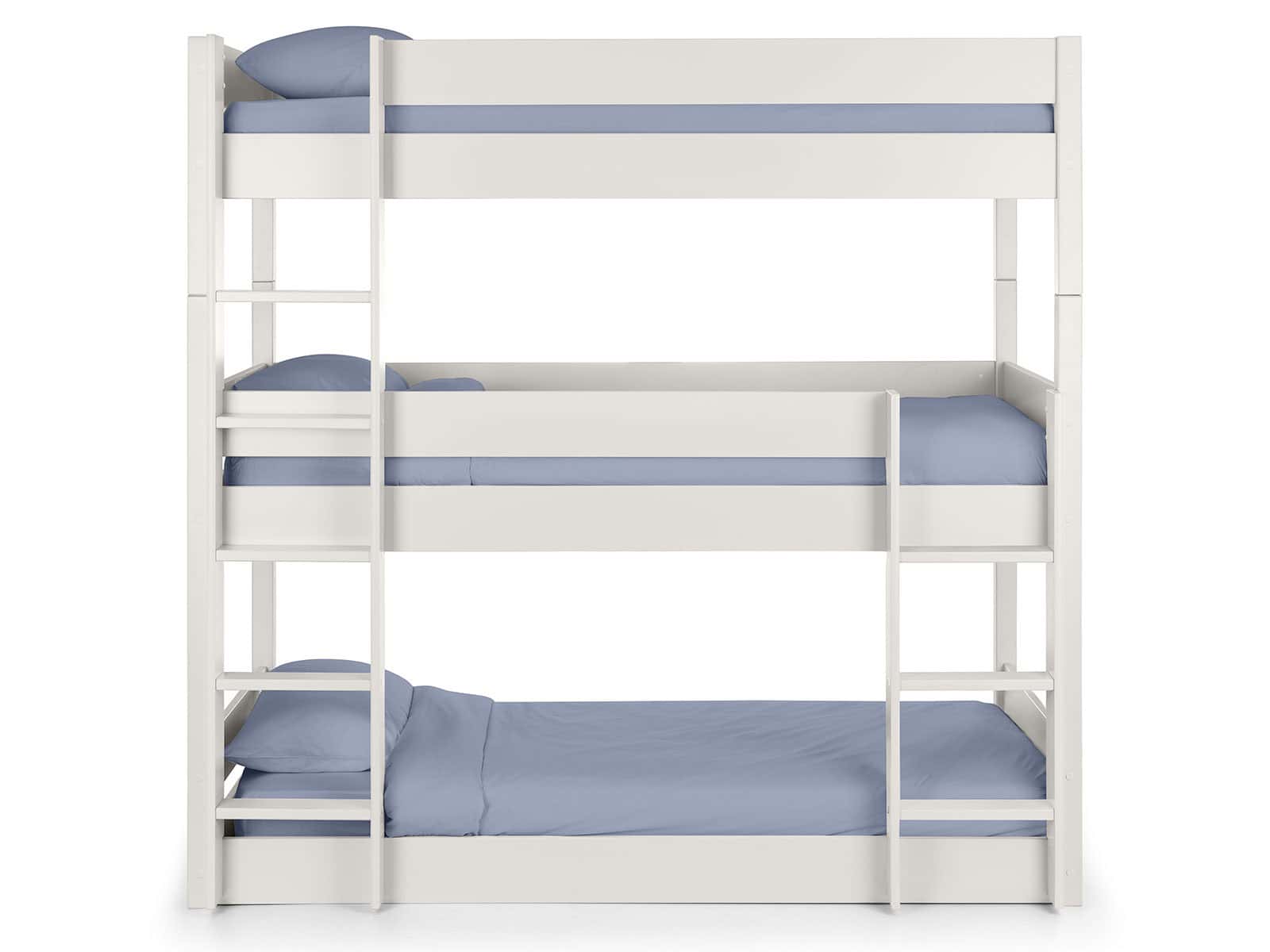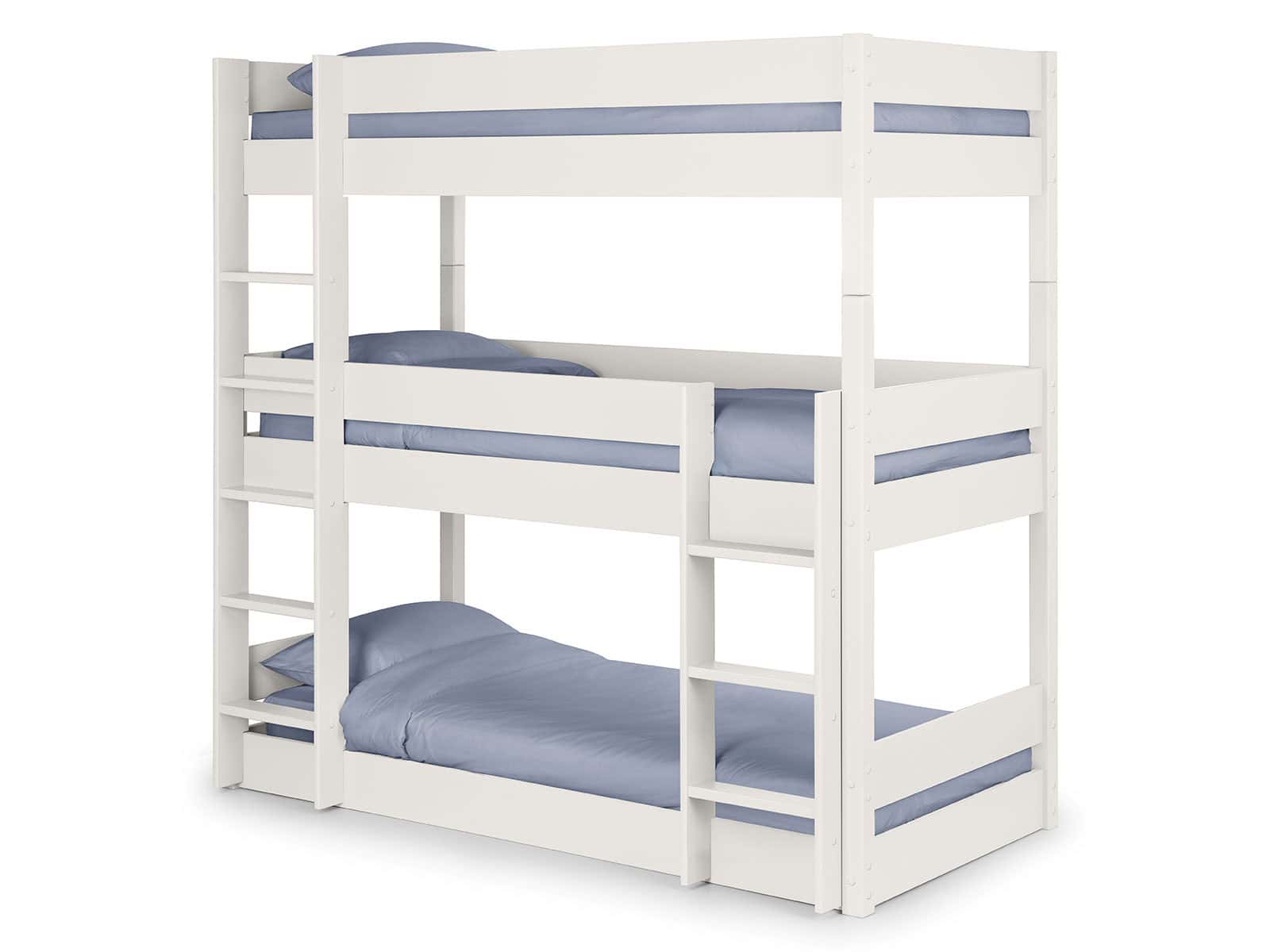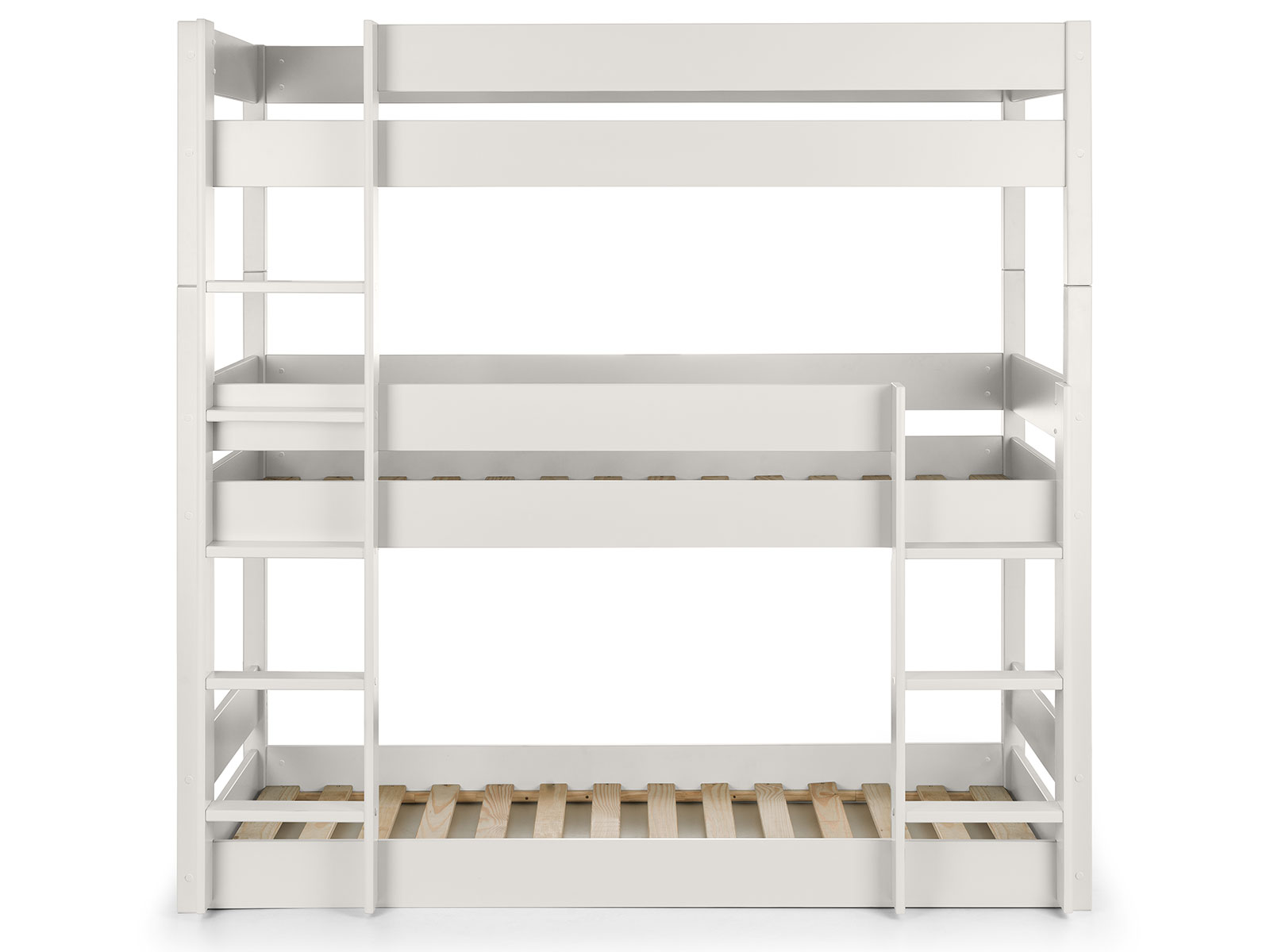 Accommodating 3 children whilst only using the space of one single bed, the Trio bunk bed is the perfect solution for those short on space in smaller bedrooms. Ideal for sleeping siblings, or regular sleepovers the durable Trio Bunk is finished in a stylish Surf anthracite, matching any bedroom decor. Crafted from solid pine and MDF, this safe and sturdy design is essential for maximising space.