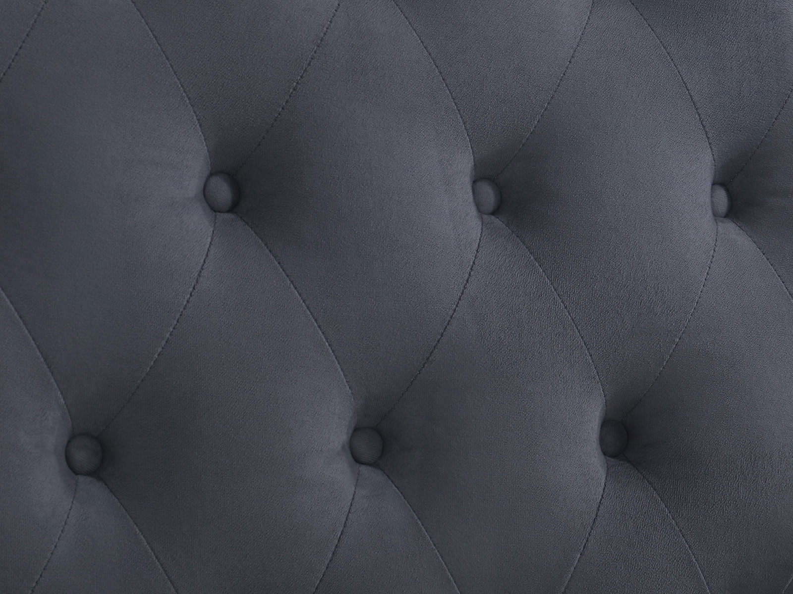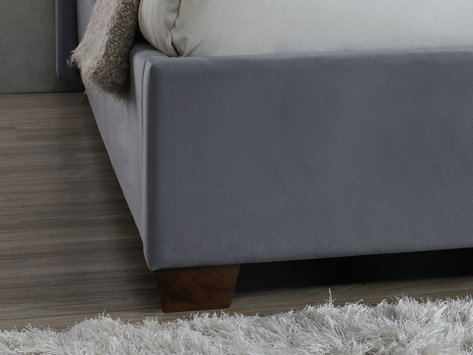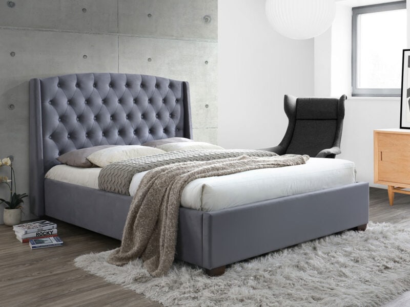 The Balmoral bed is upholstered in a luxurious grey velvet and features a wingback headboard with beautiful tufted detailing.