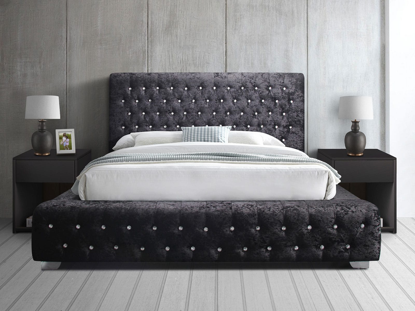 4ft6 Double Birlea Grande Bedstead in Black Crushed Velvet