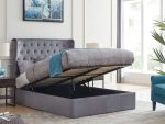 The Holway Ottoman bed is manufactured from a sturdy wooden frame, which is upholstered in a sumptuous plush grey fabric. The Holway Ottoman also features a powerful hydraulic-assisted lift-up solid slatted mattress base for superior support.