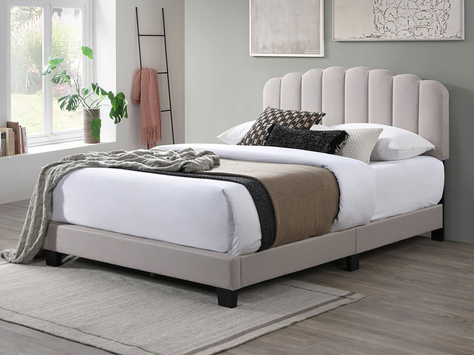 The Hope Fabric Bedstead is a stylish and sophisticated choice, designed to enhance any bedroom with its modern yet timeless appeal. Upholstered in high-quality Grey fabric or Pebble fabric, this bed frame offers a refined look that complements a variety of interior styles. The gently curved headboard and clean lines create a striking focal point, adding a touch of elegance to your space.