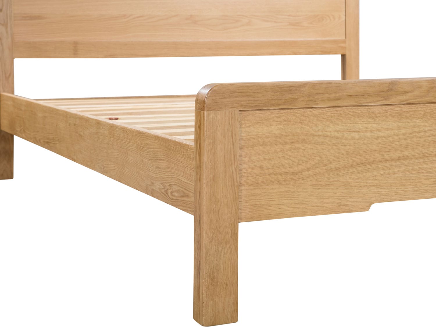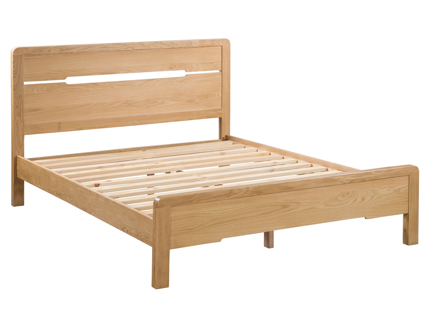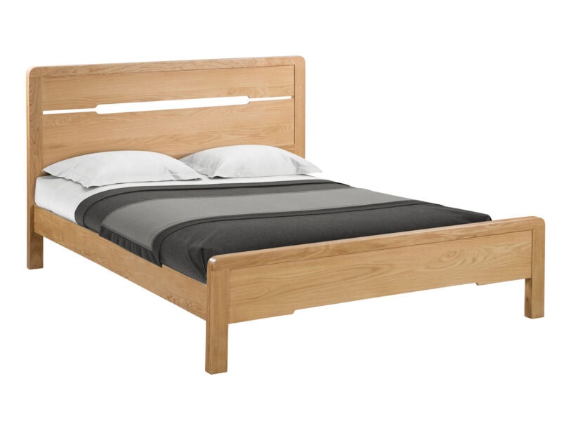 Crafted from solid white oak and oak veneers, the Curve combines clean lines with a gentle curved edging, adding a stunning touch to any bedroom. This Curve bed features a recessed handle styled headboard, to match the design of the bedroom range. With a solid wooden slatted base, to prolong mattress life, this Curve bed is available in 135cm double and 150cm king sizes. Part of the extensive Curve bedroom range from Julian Bowen