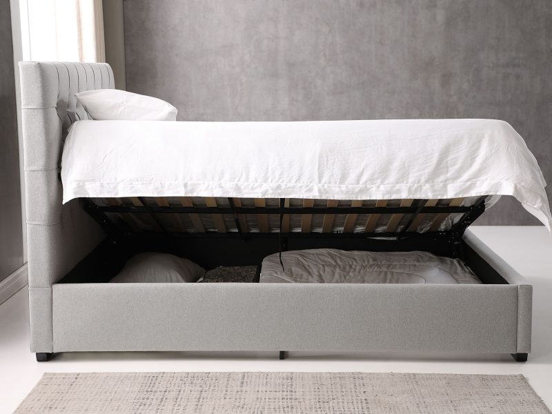 Kyoto Elisa Gas Lift Ottoman Bed in Hopsack Grey
