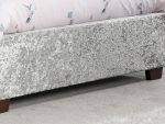 The Cologne bedstead is upholstered in either a steel crushed velvet or a grey fabric and features a striking buttoned headboard.