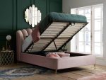 Gently winged and pleated, this bed will look sleek and modern in any room setting. The Lottie ottoman bed frame is upholstered in polyester with metal feet.