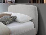 ? Gentle curves to the headboard and foot end, along with stunning soft fabric compliments the light wood feet.