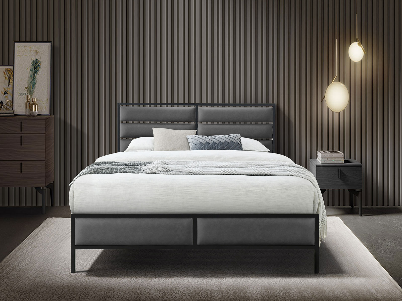 The Marford 5ft Bed in PU / Metal Grey is a king-size bed that exudes contemporary charm with its striking PU upholstery. Featuring a sturdy frame and elegant grey finish, this bed brings a touch of refinement to your sleeping space.