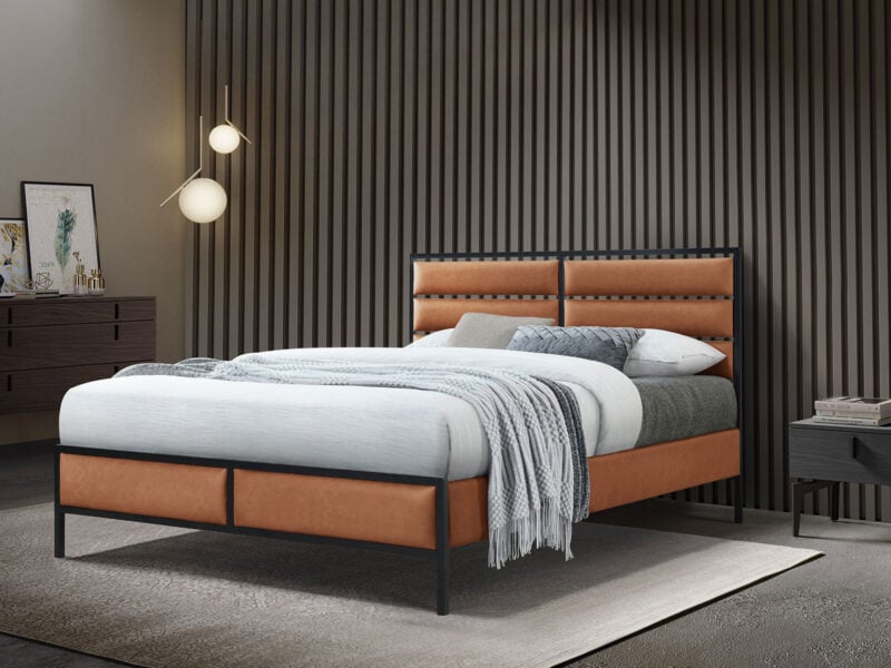 The Marford 5ft Bed in PU / Metal Tan combines spacious comfort with a sophisticated tan PU finish. Ideal for creating a cozy yet stylish retreat, this king-size bed offers durability, elegance, and a modern aesthetic.