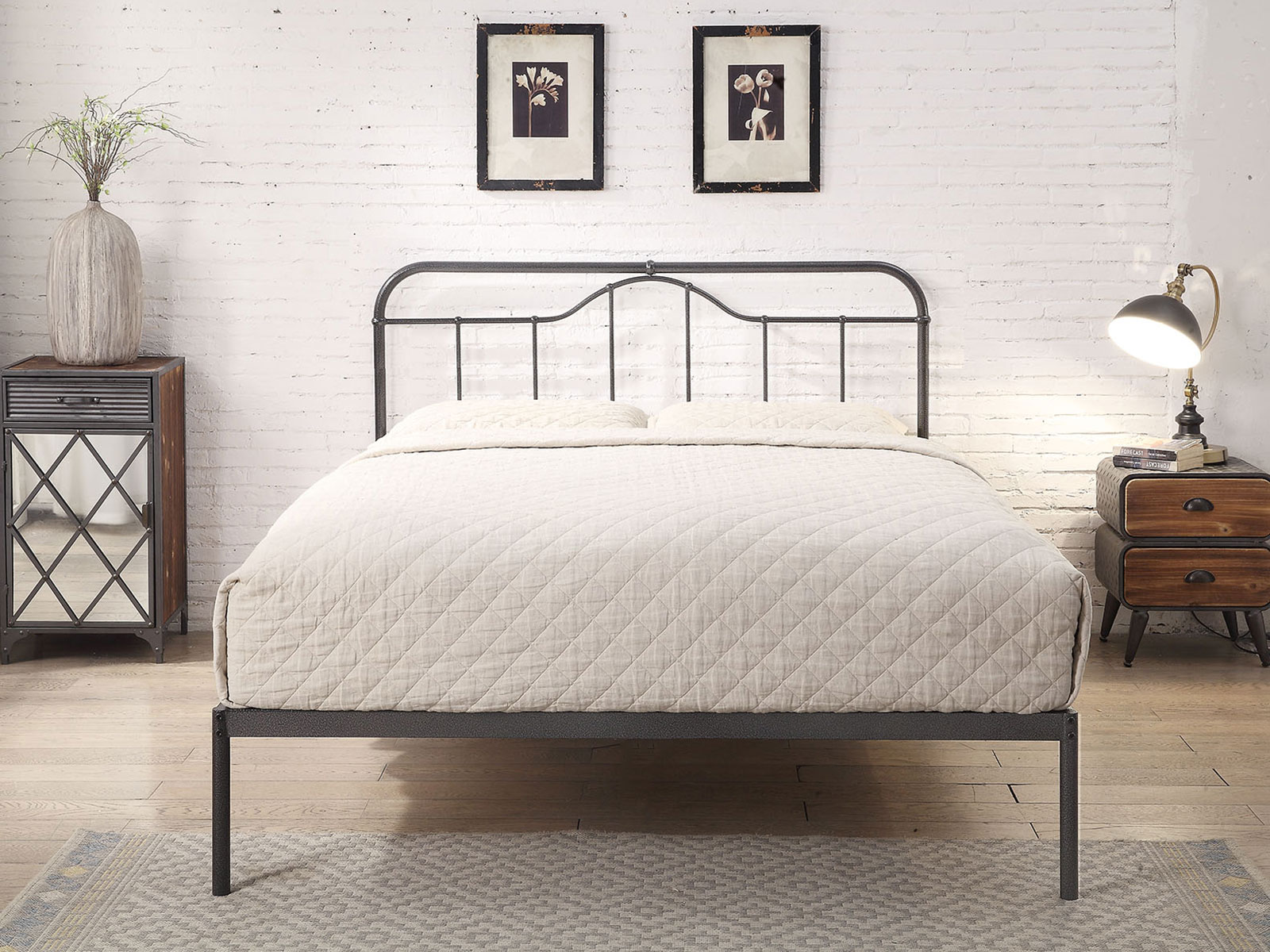 Steel Bed Frame Construction in Antique Black/Silver