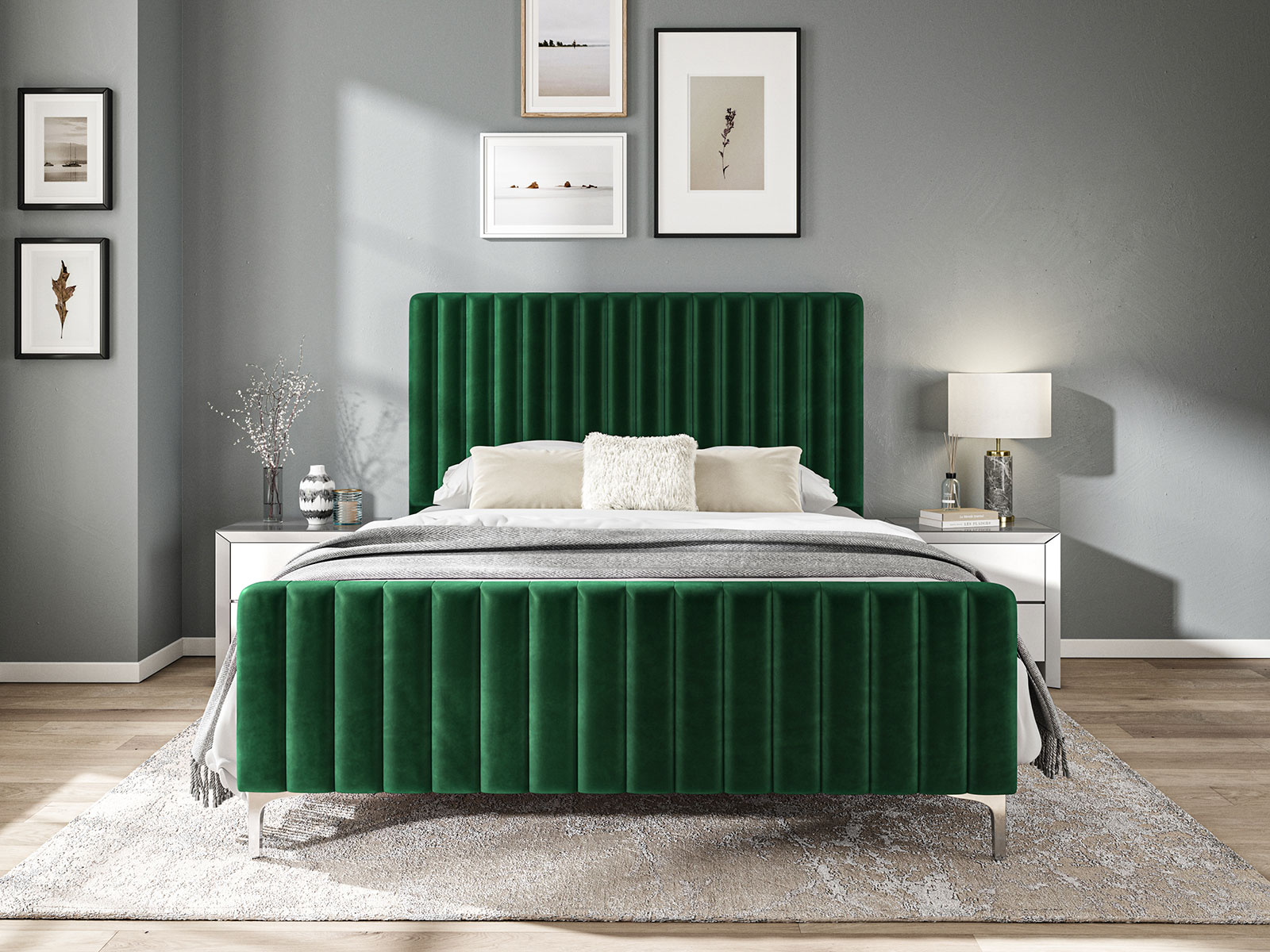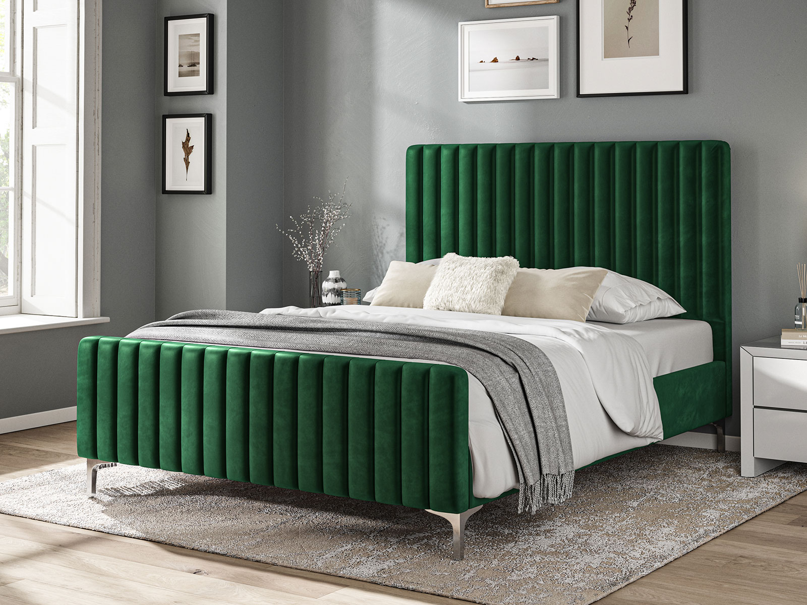 5ft King Size Furniture Mill Ascot Fabric Bed in Green Velvet