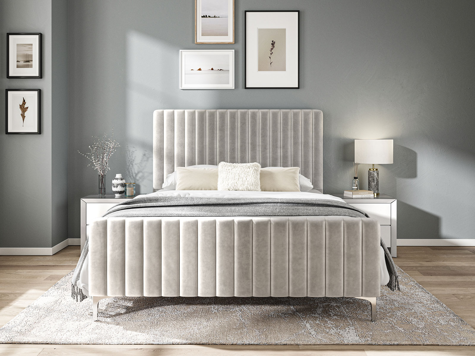 5ft King Size Furniture Mill Ascot Fabric Bed in Silvery Grey Velvet