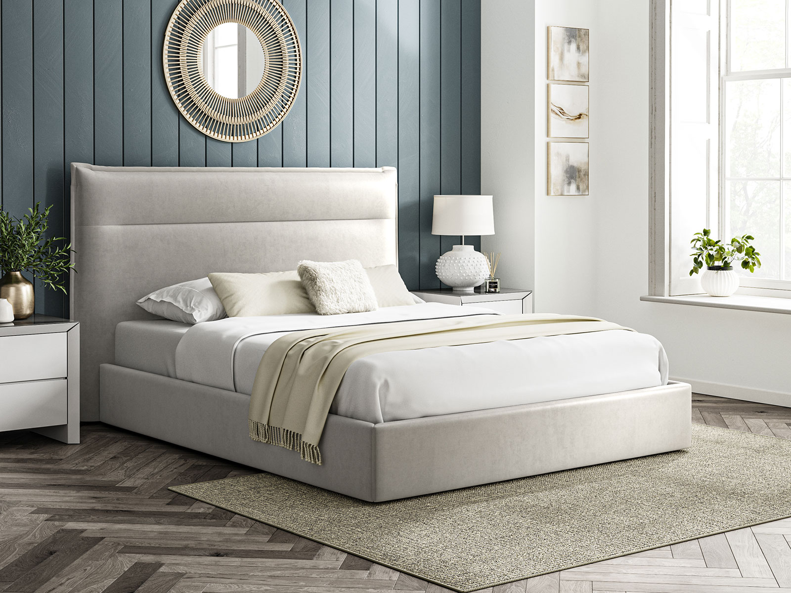 5ft King Size Furniture Mill Windsor Fabric Ottoman Bed in Silvery Grey Velvet