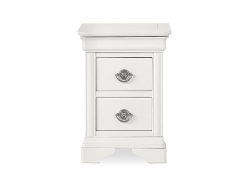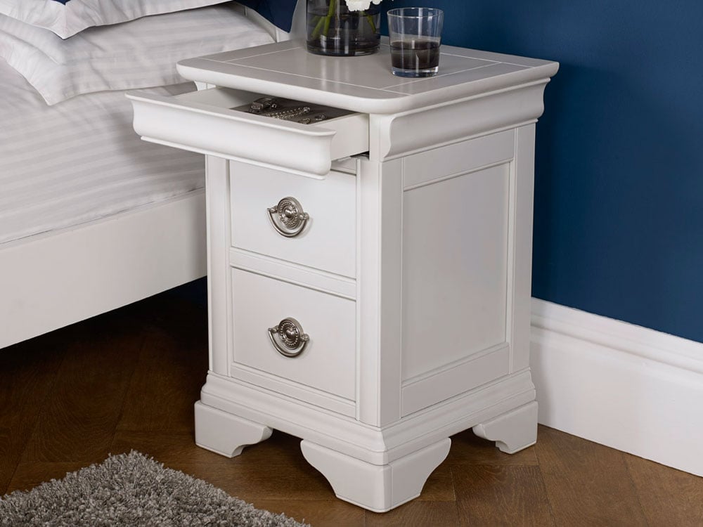 The Chantilly White bedroom collection is crafted from white painted American poplar solids and veneers and offers a contemporary update to classic French styling. Chantilly effortlessly combines a bold character with subtle attention to detail that results in a range that is, quite simply, beautiful. Intricate details such as a curved crest rail on the bed and bespoke shield handles contribute to the beauty of this range, while surprising features such as hidden drawers and soft-closing runners allow for a superior user experience. Chantilly is an exquisitely grand range that will add an opulent touch to any bedroom