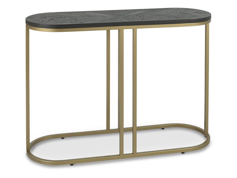 Add glamour and make a statement in your home with the Chevron Peppercorn ash occasional range. Saw cut ash marquetry tops are finished in a rich peppercorn coloured stain and married with a burnished satin brass metal base to give this range a chic and luxurious feel. Each of the hand-crafted boarded chevron patterned tops are wire brushed and distressed to give an authentic look and tactile feel, making the most of the beautiful and varied grains of ash. The radiused tops and bases combine beautifully with the linear frames to create a contemporary and slightly eclectic blend.