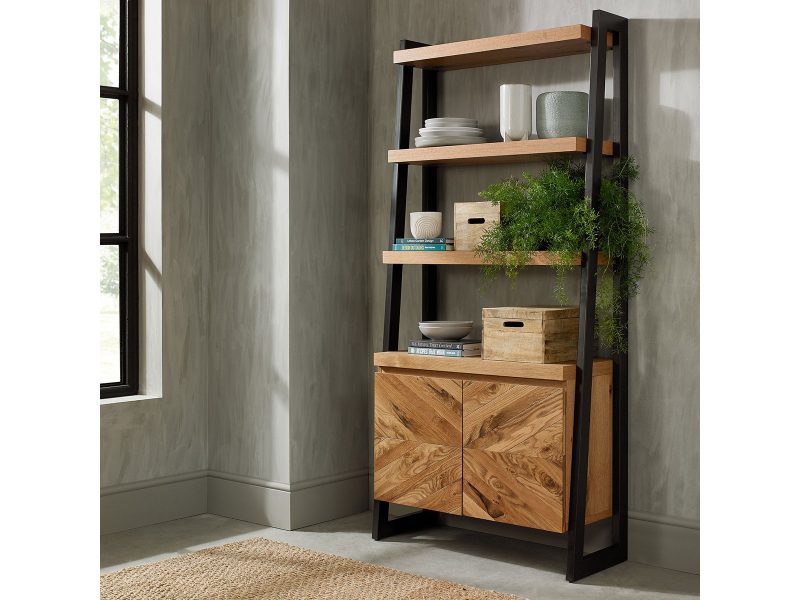 Ellipse Rustic Oak showcases bold design with a combination of the natural lines of the elliptical and circular tables, paired with the geometrical & linear shapes of the cabinet, to create a compelling and slightly eclectic look. The striking saw cut rustic oak marquetry tops on the thick table tops and cabinet doors contrast beautifully against the large welded peppercorn powder coated metal bases, creating a range that successfully blends intricate craftsmanship and indulgently warm tones with an on trend industrial aesthetic. Each of these hand-crafted pattern tops and laminated rustic oak cabinet frames are wire brushed and distressed to give a rustic look and tactile feel, making the most of the beautiful and varied grain of oak. Generously proportioned dining chairs, styled with diamond stitch upholstery in a choice of luxurious dark grey fabric and old west vintage bonded leather, feature plush padded seats, gently flared backs and elegantly tapering legs, imbuing comfort and indulgence. Superior Blum soft close drawer runners add that final quality detail to a range that is sure to be a focal point in any space.
