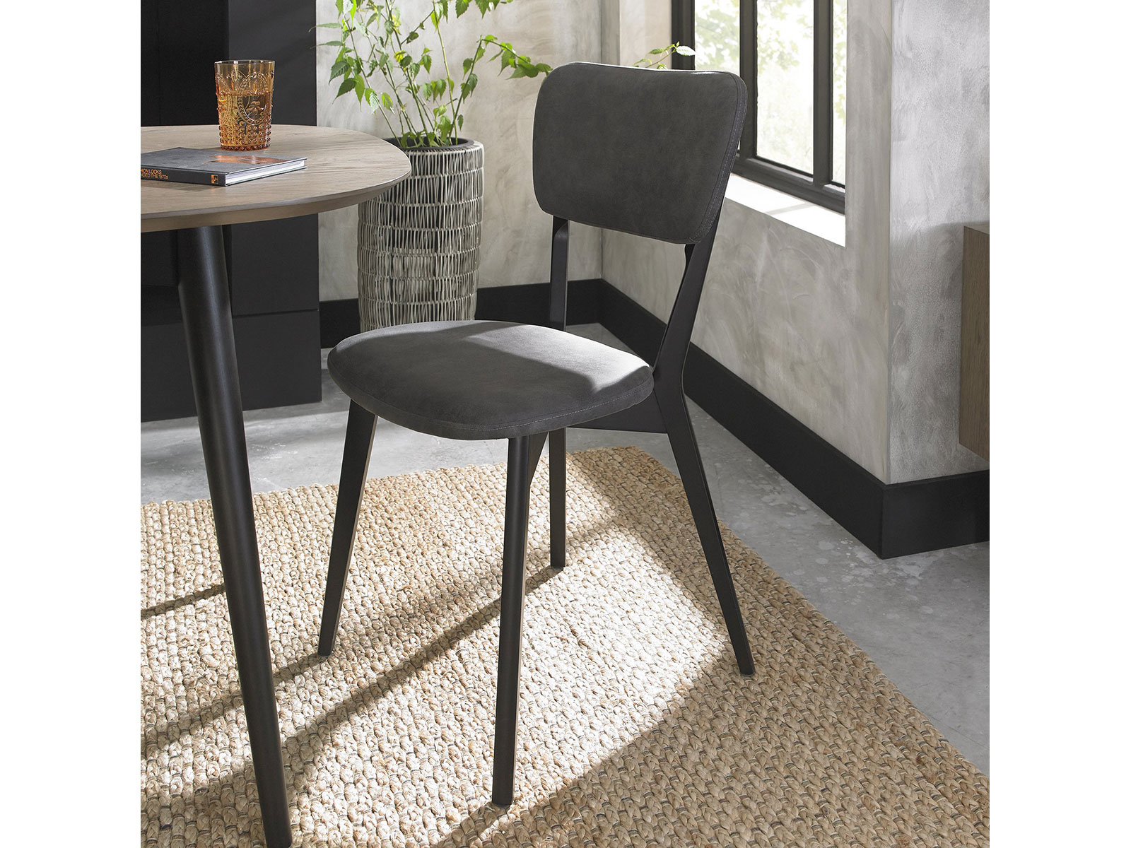 Taking inspiration from sophisticated mid-century styling through hints of both retro and Scandinavian design, Vintage is a fashionable range that features a varied blend of shapes and forms. Contrasting wire brushed weathered oak tops and carcasses with peppercorn painted base and legs are perfectly paired with a choice of upholstered chair’styles in either a dark grey mottled fabric or an aged vintage bonded leather. Striking feature handles, engineered mitre joints, finely tapered legs, reciprocal extension runners and super comfortable casual chairs and stools made using moulded plywood shells with layers of foam encased in a ribbed look upholstery attest to the expert craftsmanship that underpins this collection. The natural shapes of the tables and radiused frames of the casual chairs and stools work with the geometrical and linear cabinet pieces to create a compelling and slightly eclectic blend. Vintage Dining boasts the perfect combination of inspired design with beauty and simplicity matched with craftsmanship, comfort and functionality.