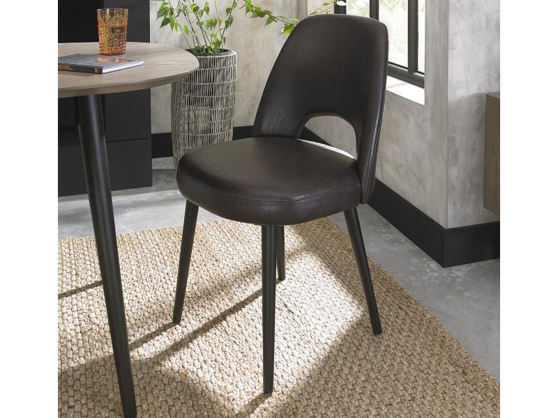 Taking inspiration from sophisticated mid-century styling through hints of both retro and Scandinavian design, Vintage is a fashionable range that features a varied blend of shapes and forms. Contrasting wire brushed weathered oak tops and carcasses with peppercorn painted base and legs are perfectly paired with a choice of upholstered chair’styles in either a dark grey mottled fabric or an aged vintage bonded leather. Striking feature handles, engineered mitre joints, finely tapered legs, reciprocal extension runners and super comfortable casual chairs and stools made using moulded plywood shells with layers of foam encased in a ribbed look upholstery attest to the expert craftsmanship that underpins this collection. The natural shapes of the tables and radiused frames of the casual chairs and stools work with the geometrical and linear cabinet pieces to create a compelling and slightly eclectic blend. Vintage Dining boasts the perfect combination of inspired design with beauty and simplicity matched with craftsmanship, comfort and functionality.