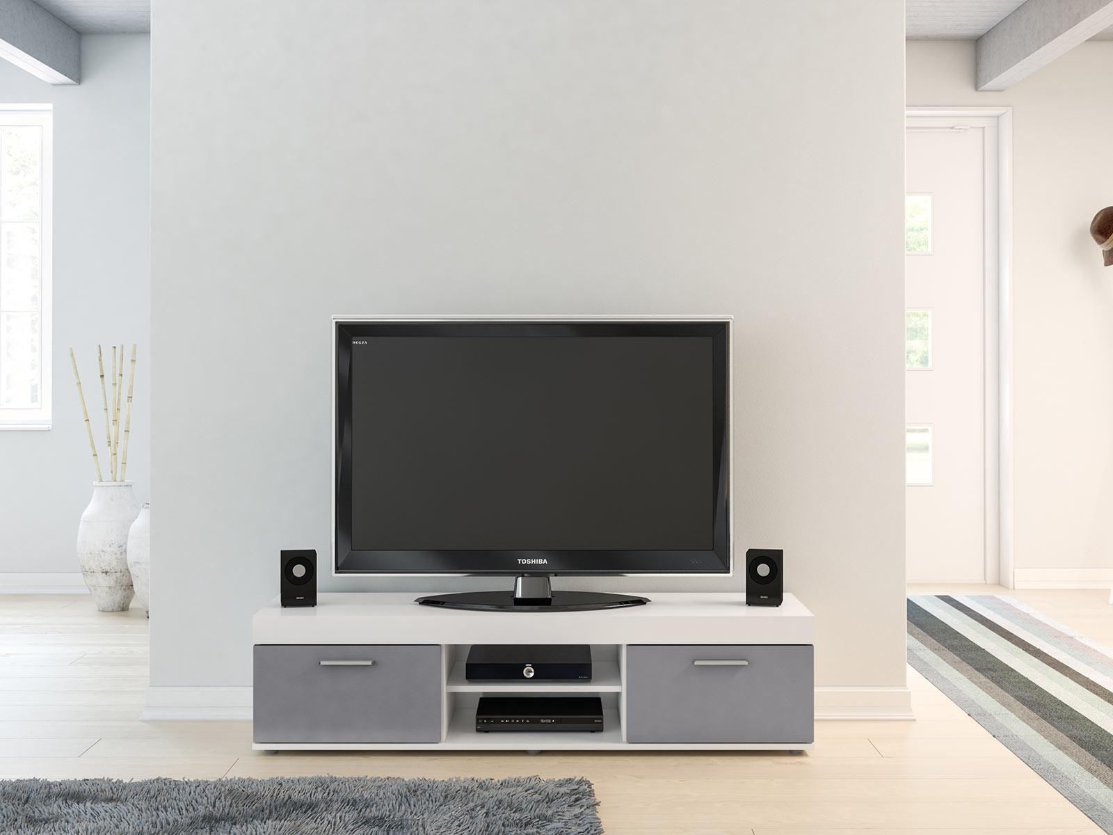 The combination of closed and open storage space in the Edgeware TV unit makes it a highly practical unit with clean lines for a contemporary style. This sleek and stylish design will look stunning in any style living room thanks to It’s high gloss facial. Featuring 2 doors this is ideal for storing DVD’s plus an open compartment for electronic devices. The maximum recommended size of TV to be used is 55″.
