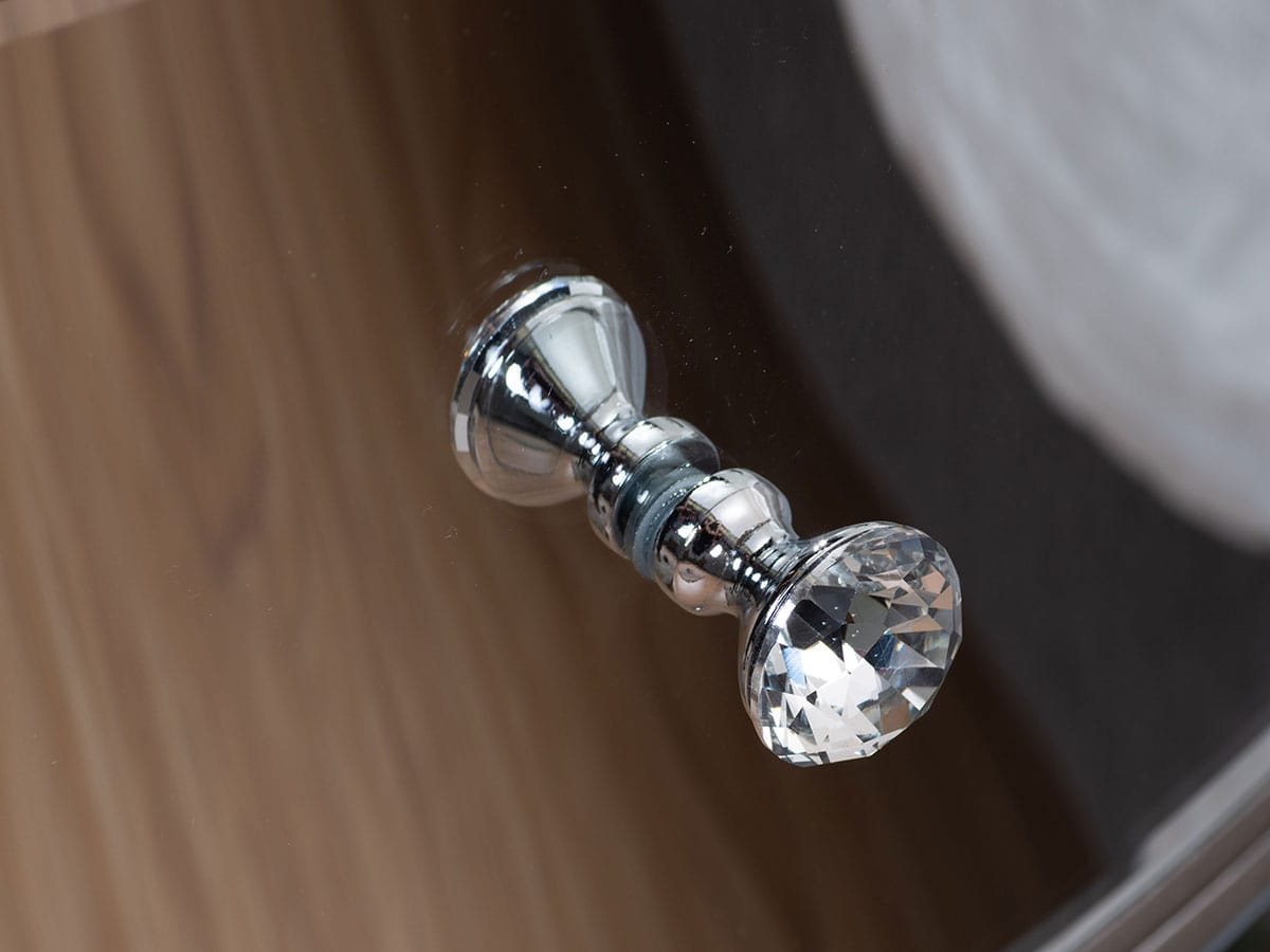 Complete with crystal handles, this Elysee bedside table features two spacious drawers with a luxurious velour lining.