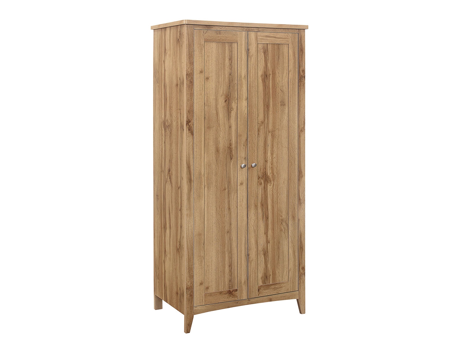 This 2-door wardrobe is spacious behind double doors, featuring a single rail, ideal for organising clothing.