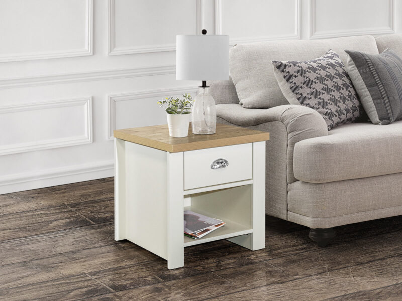 Birlea Highgate 1 Drawer Lamp Table in Cream And Oak