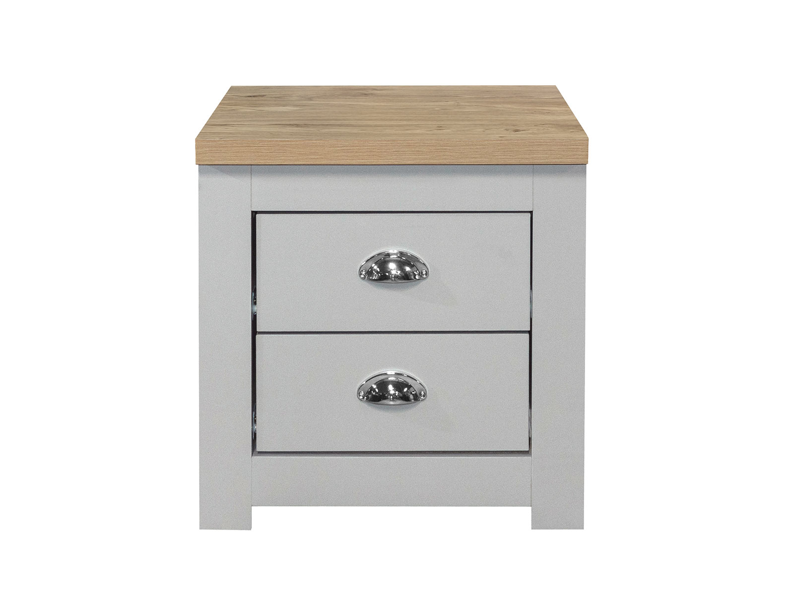 The Highgate 2 drawer bedside features 2 handy drawers ideal for storing away any belongings. The drawers are finished off with beautiful silver cup handles.