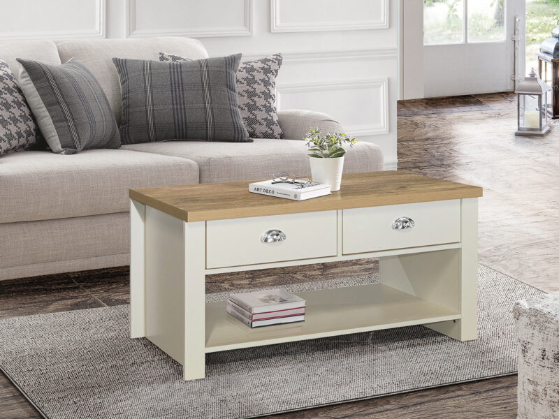 Birlea Highgate 2 Drawer Coffee Table in Cream And Oak