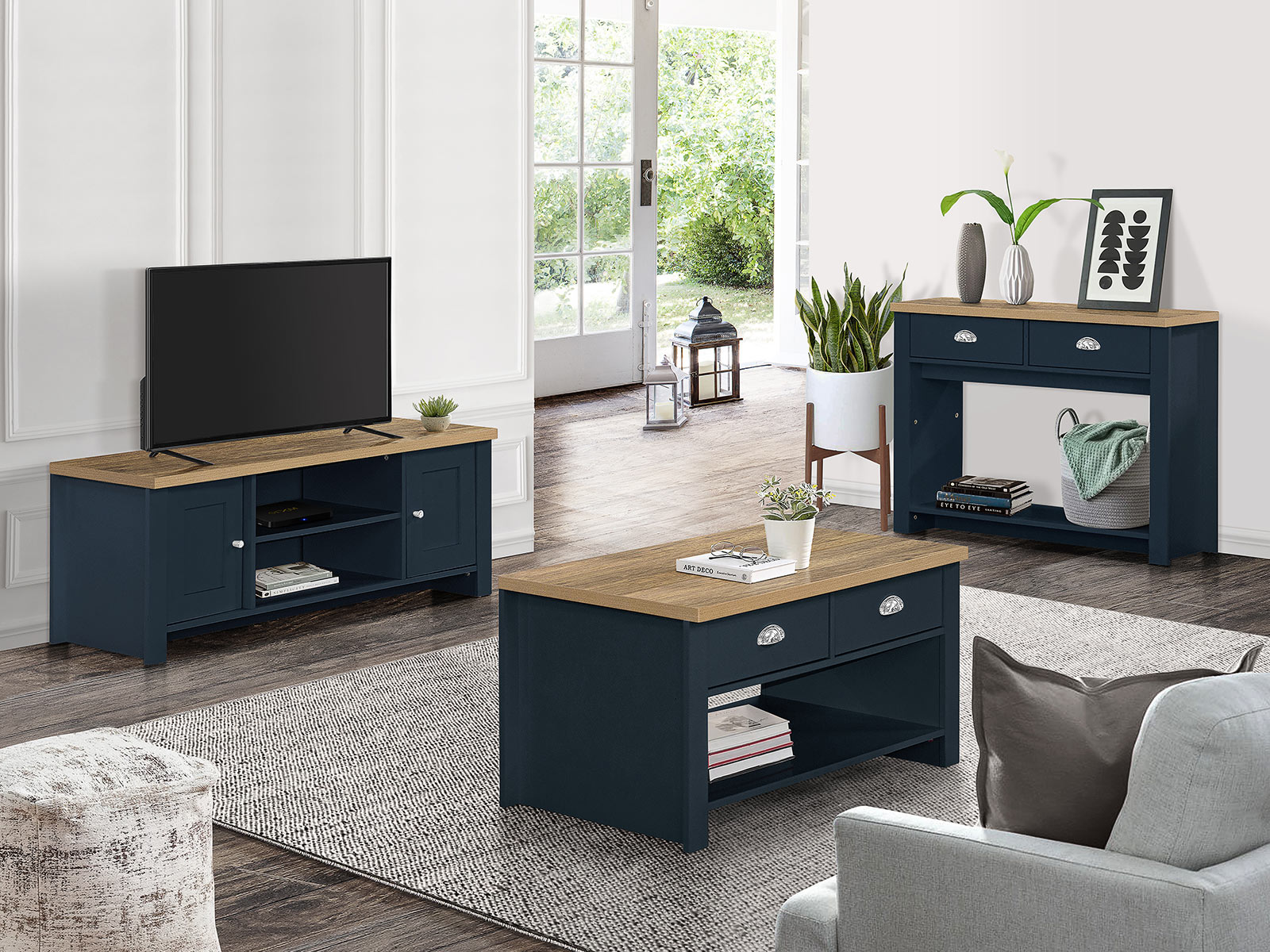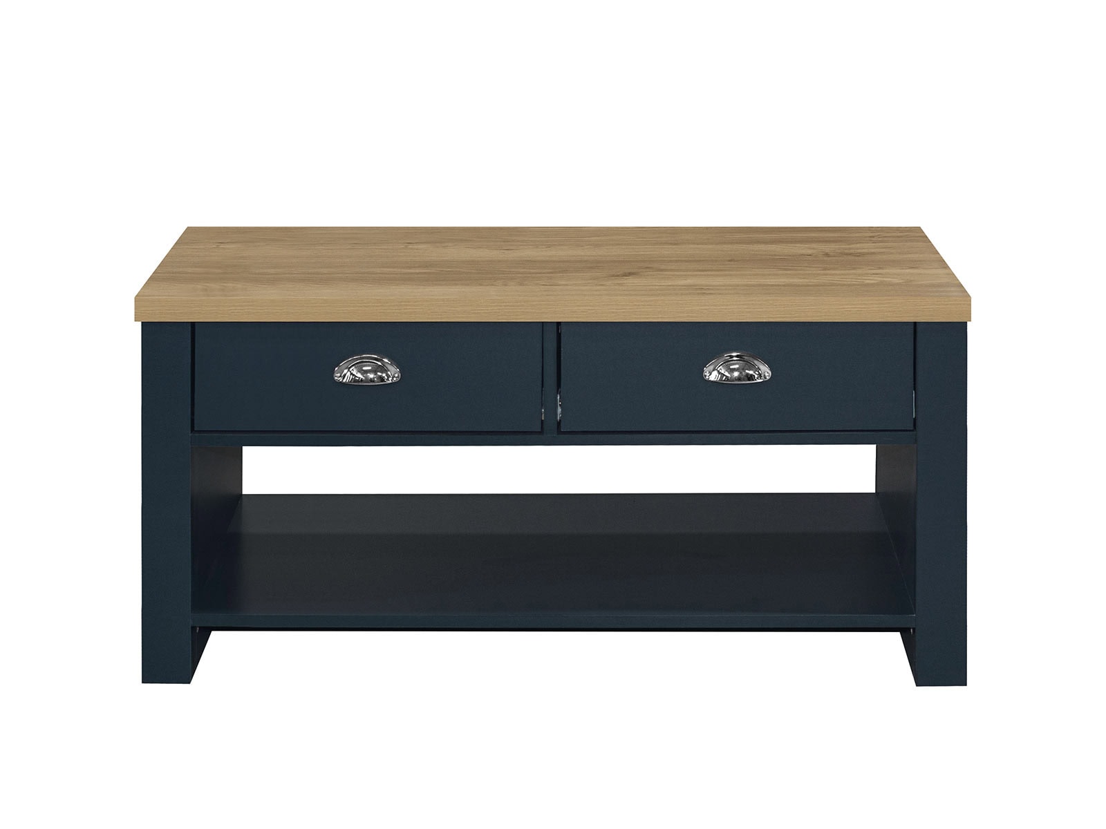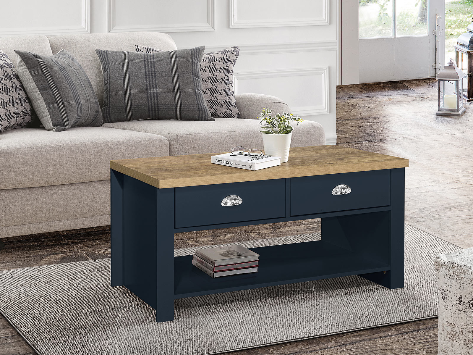 Birlea Highgate 2 Drawer Coffee Table in Navy Blue And Oak