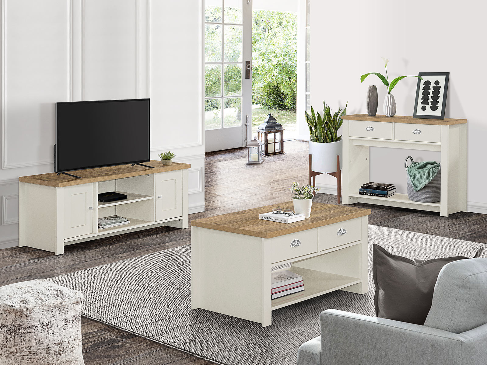• Available in cream & oak, grey & oak and navy & oak