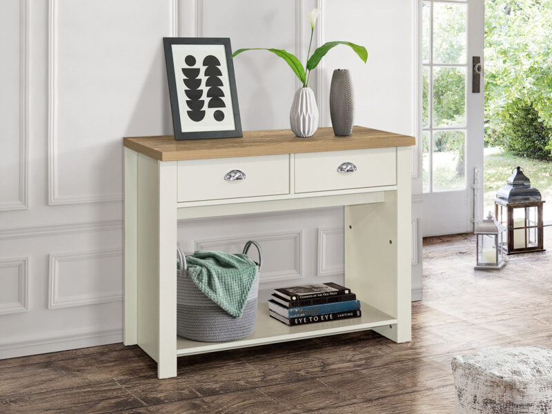 Birlea Highgate 2 Drawer Console Table in Cream And Oak