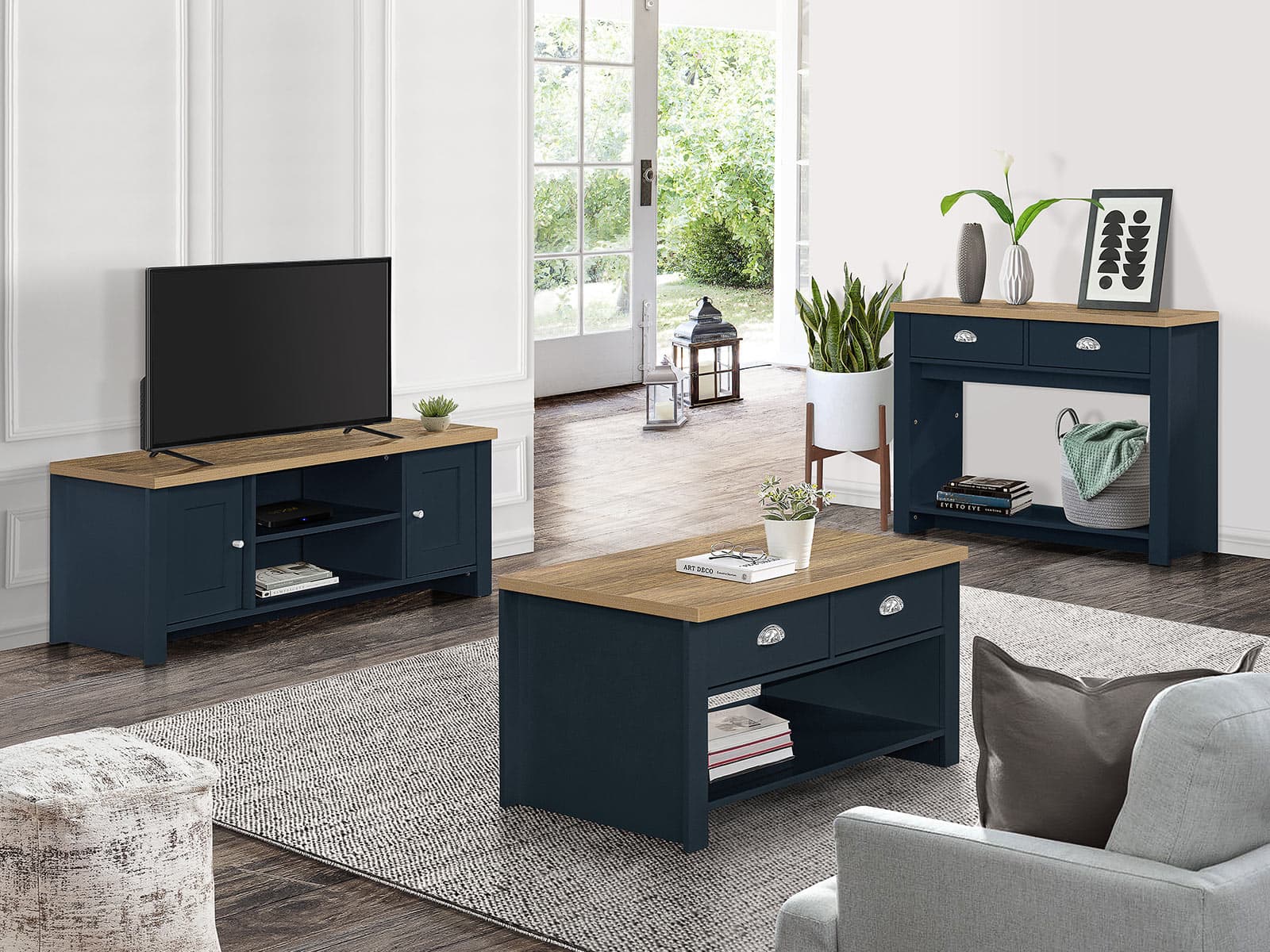 • Available in cream & oak, grey & oak and navy & oak