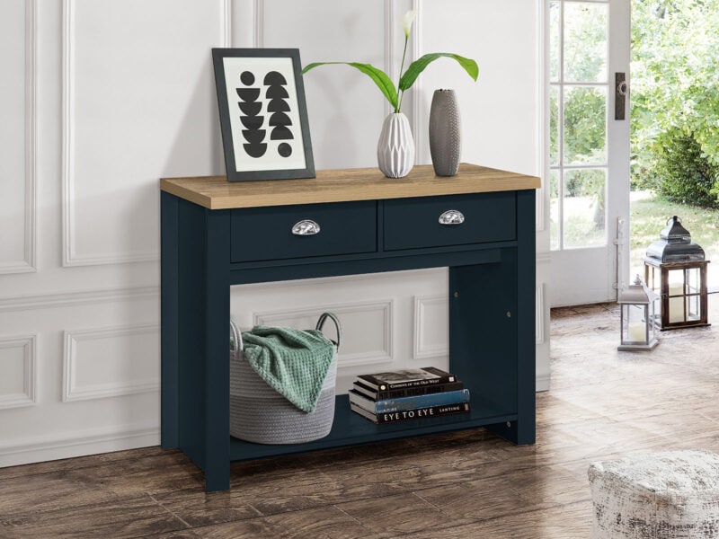 Birlea Highgate 2 Drawer Console Table in Navy Blue And Oak