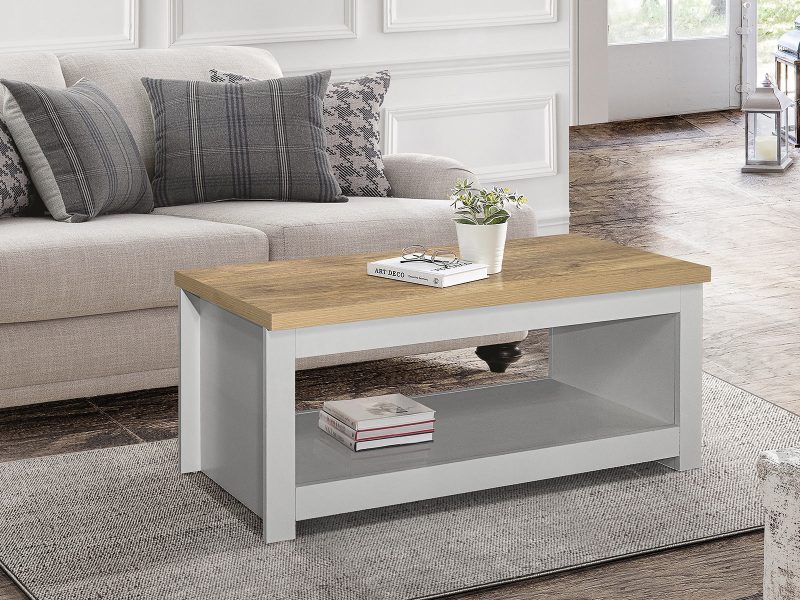 The Highgate coffee table features a large lower shelf ideal for storage.