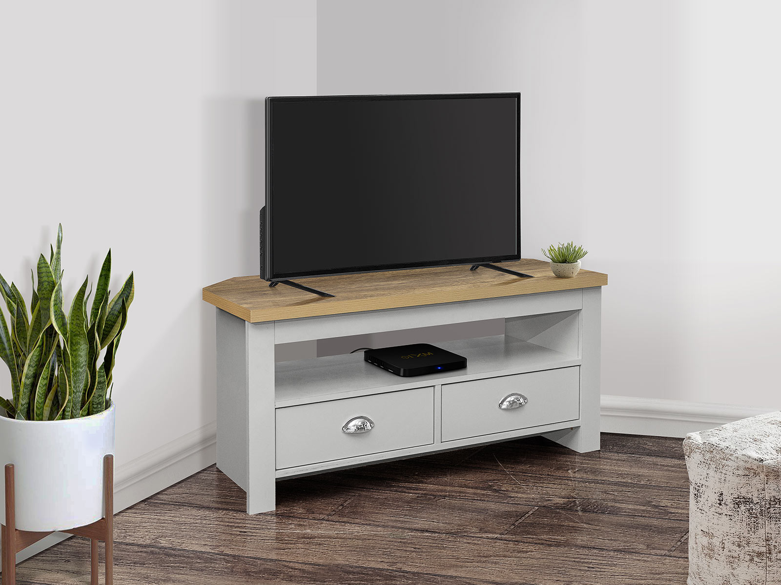 Birlea Highgate Corner Tv Unit in Grey And Oak