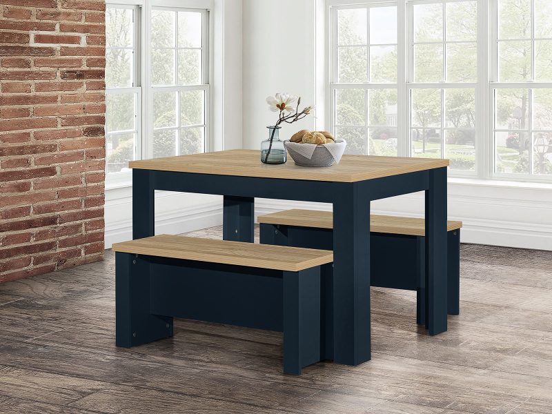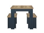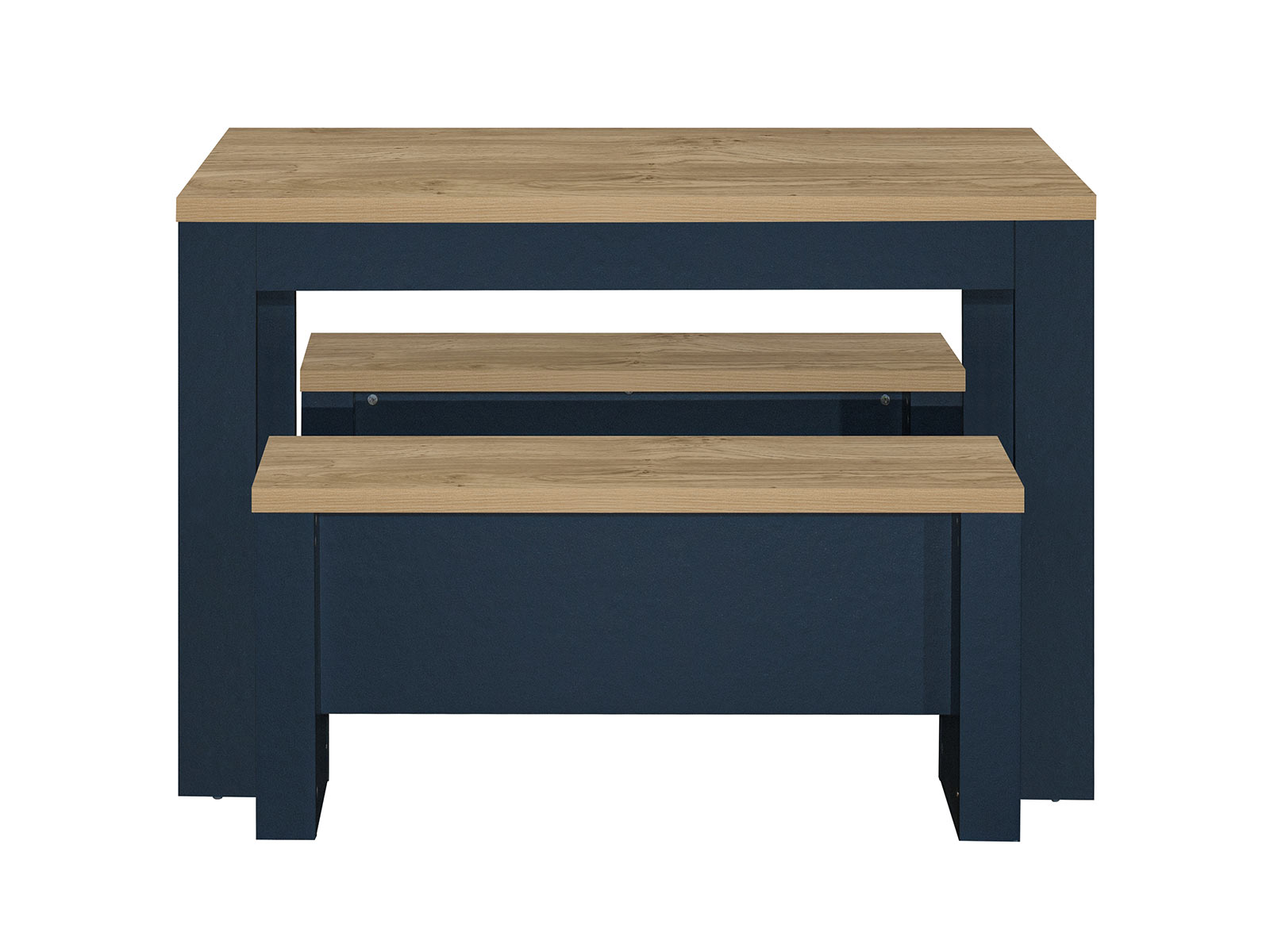 Birlea Highgate Dining Table And Bench Set in Navy Blue And Oak