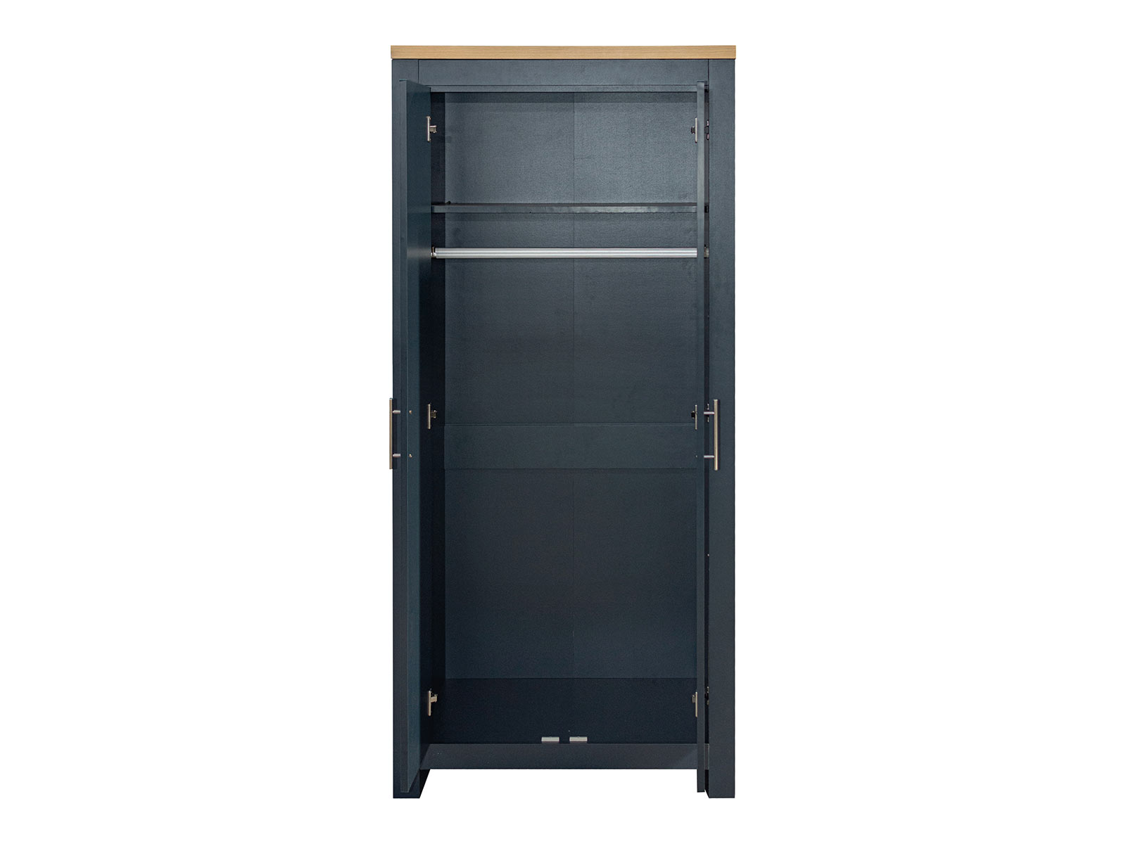 The Highgate 2 door wardrobe is spacious behind double doors, featuring a hanging rail. The doors are finished off with contemporary silver handles.