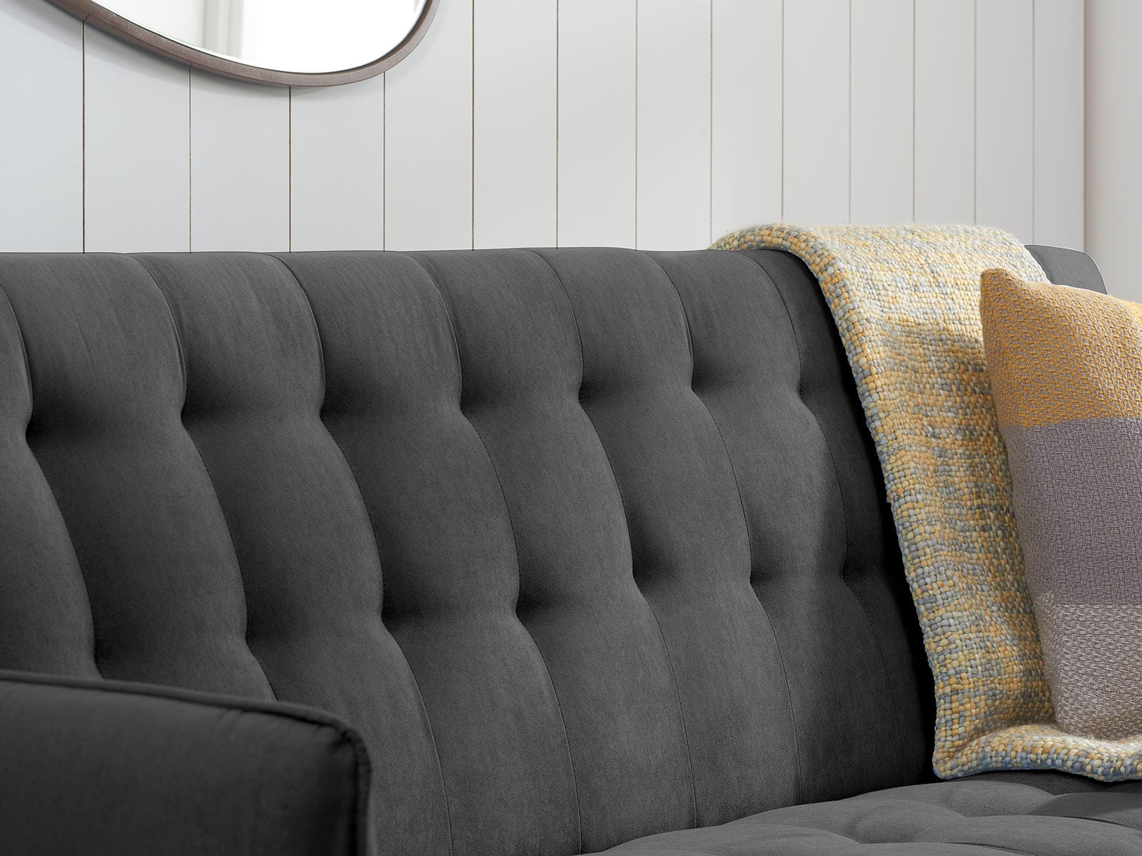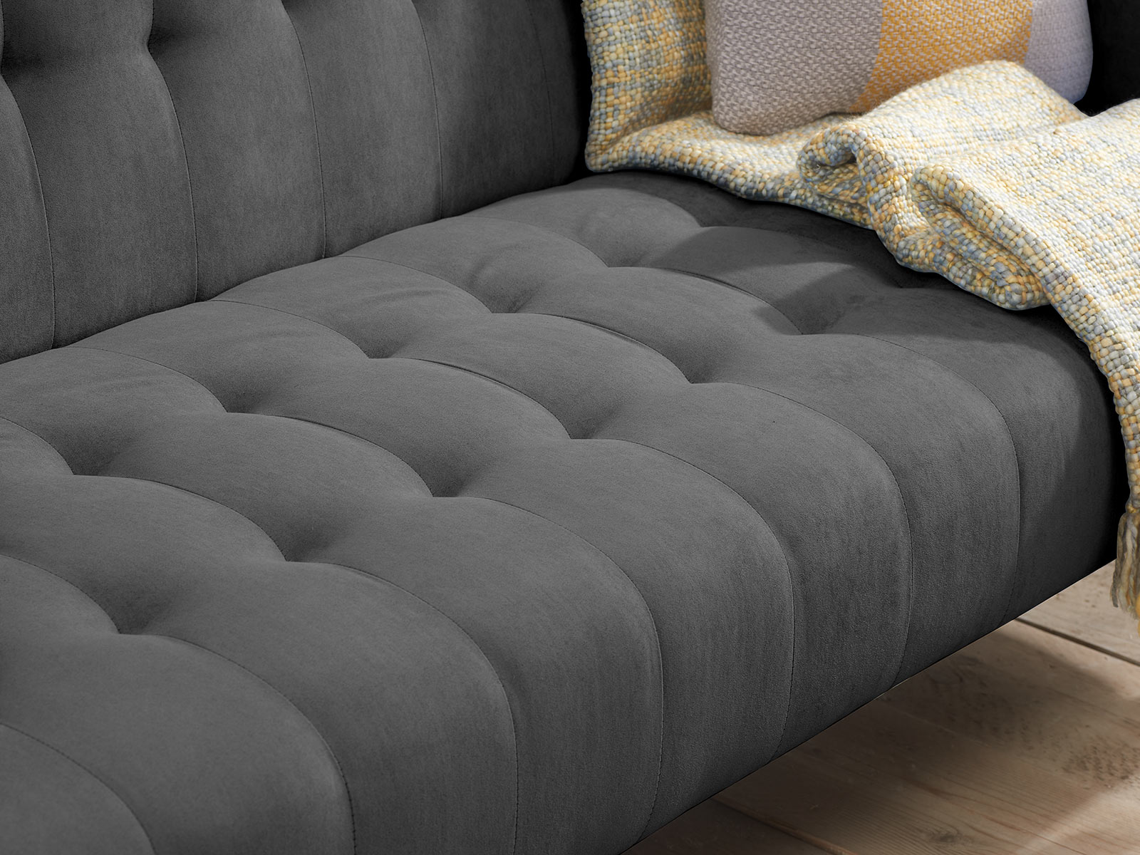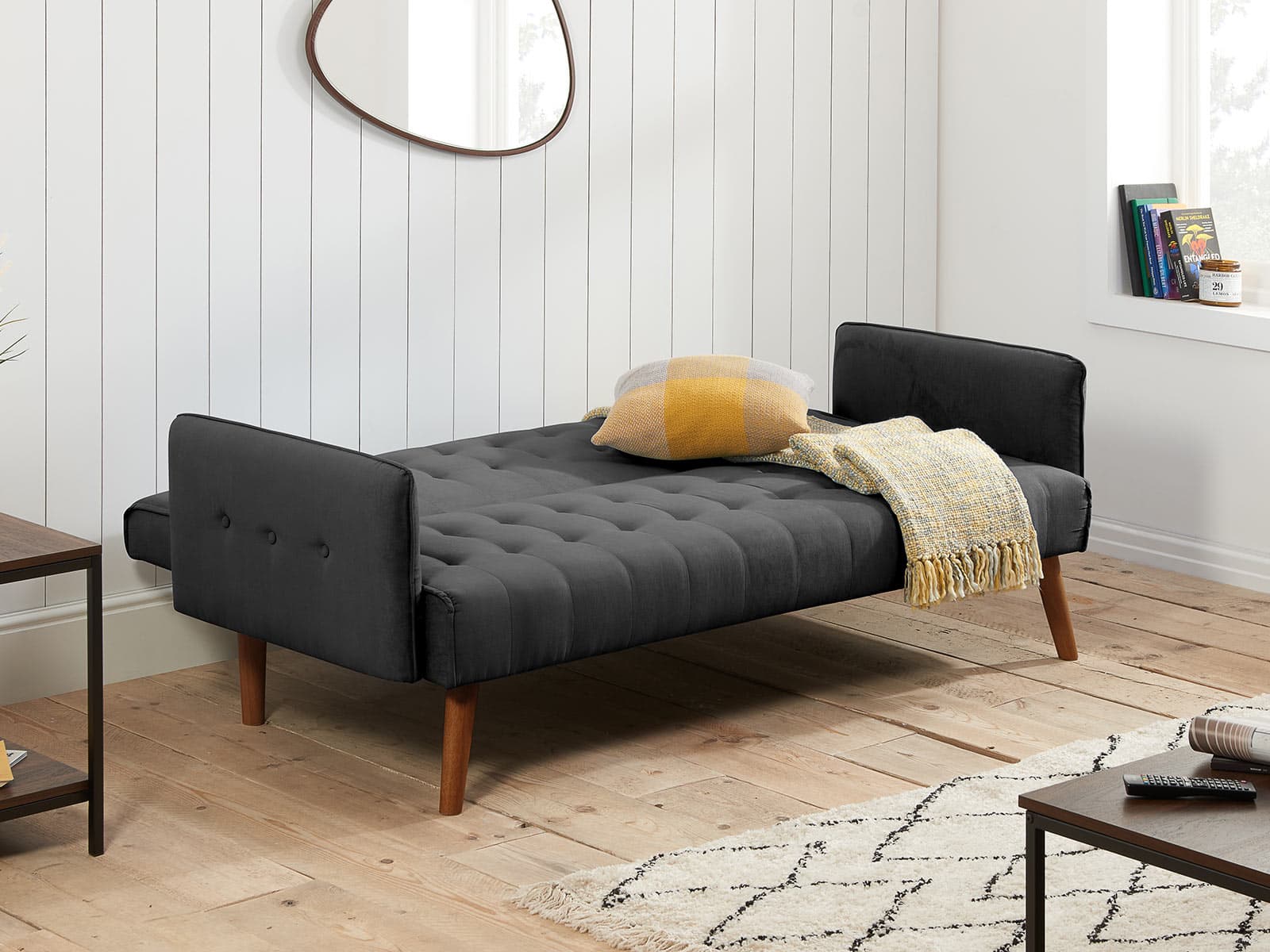 A contemporary sofa bed that’s also ideal for an occasional guest bed. Upholstered in a charcoal fabric with contrasting buttoned details this versatile sofa bed is stylish and practical.