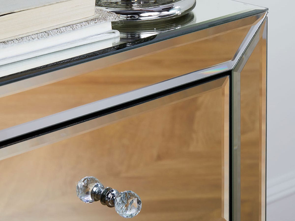 This classically designed 3 Over 4 Chest is constructed from a MDF frame and features a mirrored finish with bevelled edges and elegant mock crystal handles.