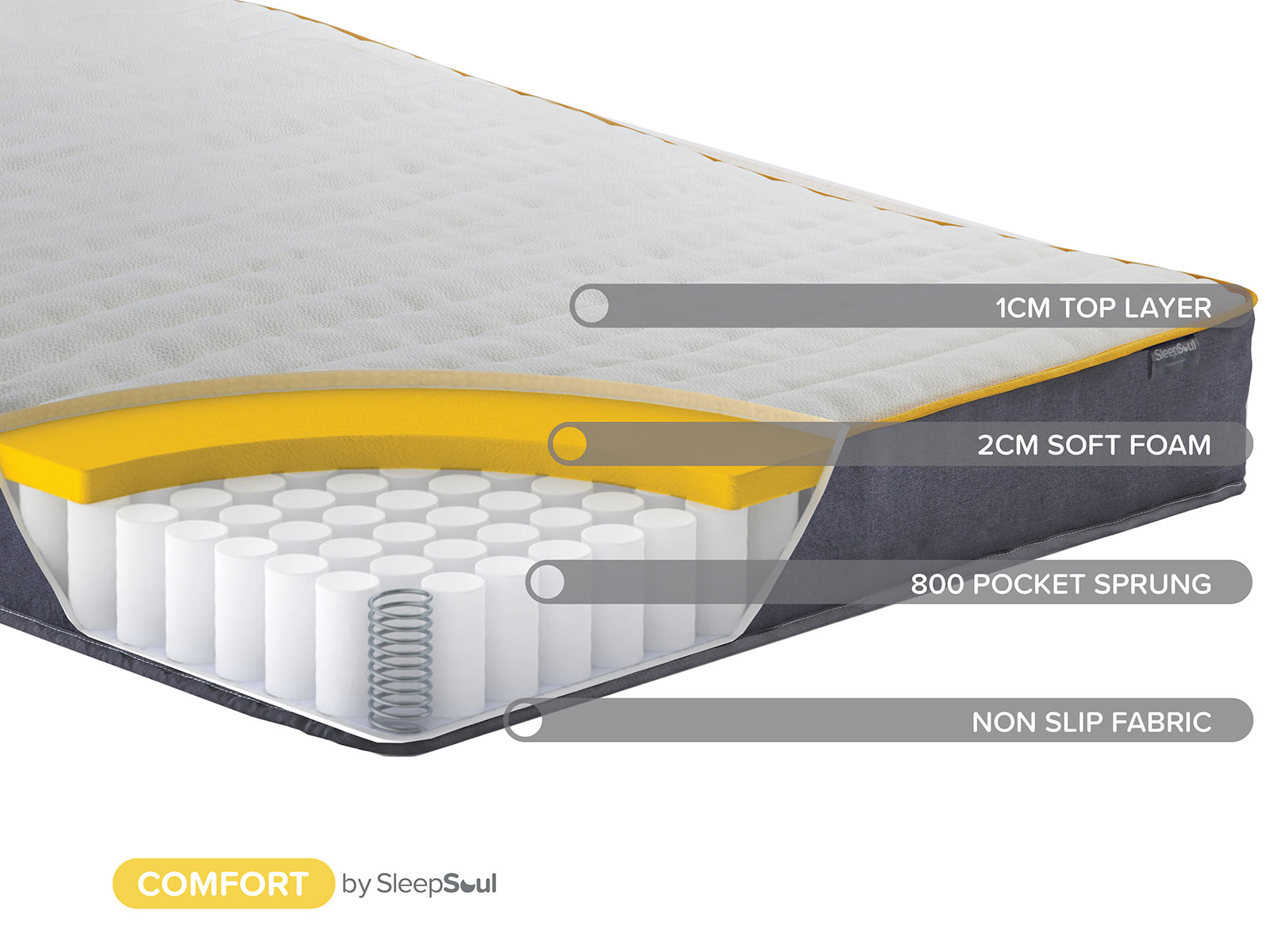 This SleepSoul Comfort mattress offers you luxurious comfort, providing you with a superb night’s sleep. It’s 800 pocket springs which will conform to your bodies shape, supporting you where you need it most and preventing the roll-together effect.