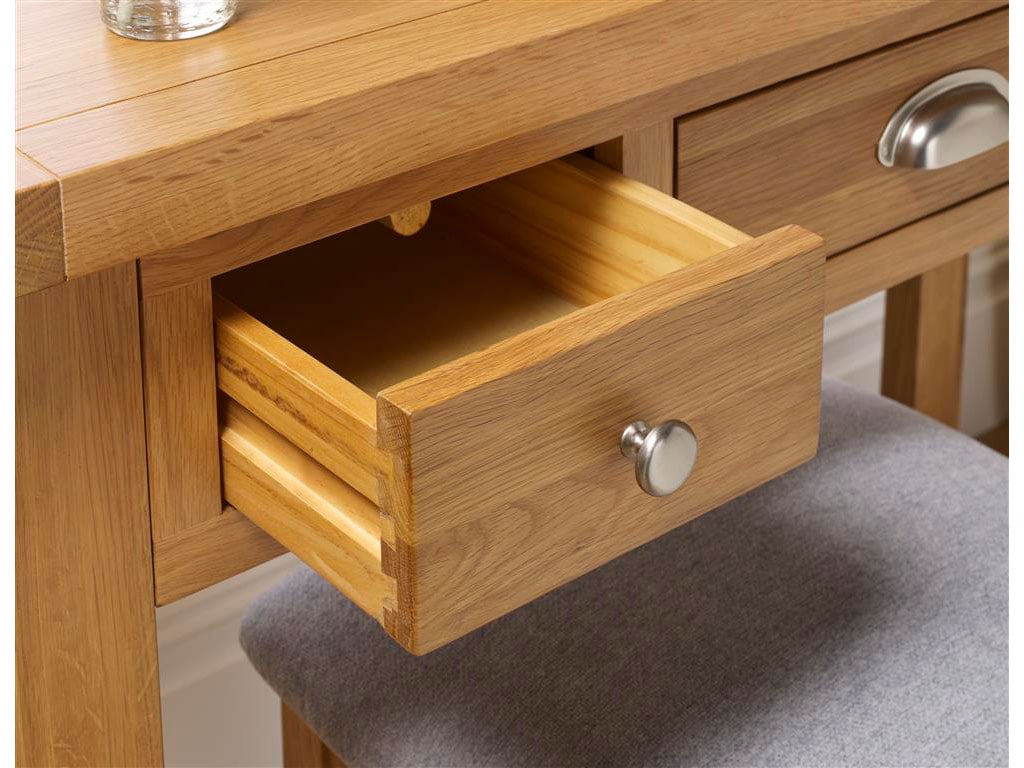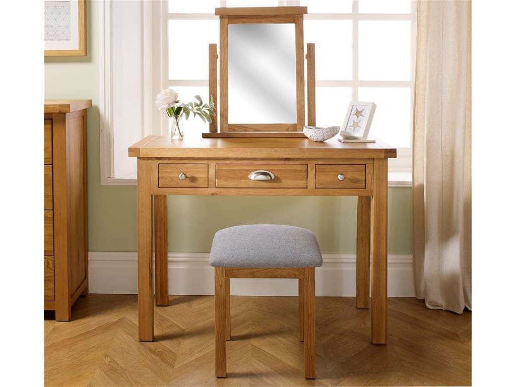 Offering practicality and 3 drawers for space to store away your beauty products, this 3-drawer dressing table looks great alone or teamed up with the Woburn mirror and stool.