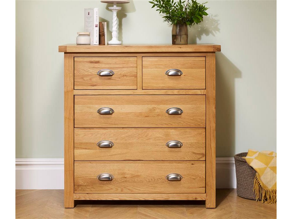 Featuring three large drawers and two smaller drawers, this 3+2 chest provides a generous amount of space to store clothes, linens and accessories.
